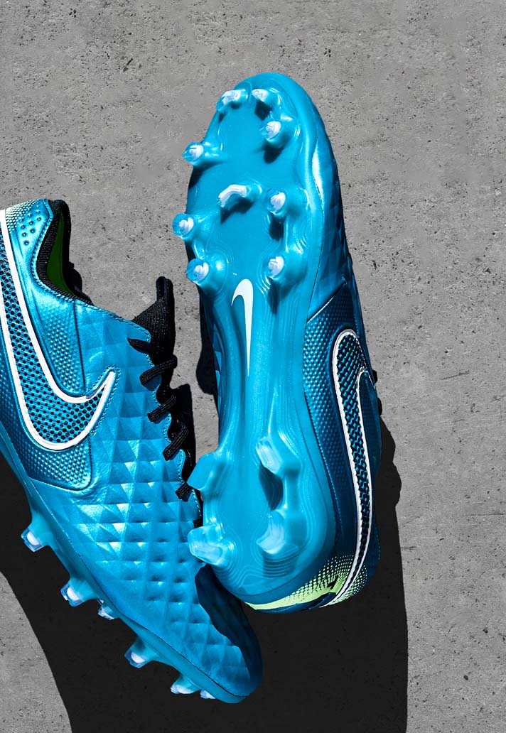 The Phantom GT arrives in a “Lime Glow/Aquamarine” look, with the lime colouring getting the lead role, dominating the whole look of the boot. In similar fashion to the Merc, the second colour, aquamarine here, is executed in subtle fashion on the Swoosh. And this passing of colour continues on to the Tiempo, which features a “Aquamarine/White/Lime Glow” paint job. Again, what was the secondary colour on the Phantom GT is promoted to primary on the Tiempo. It's then finished with pops of the lime colouring that ties the pack together, restricted mainly to the inner lining.