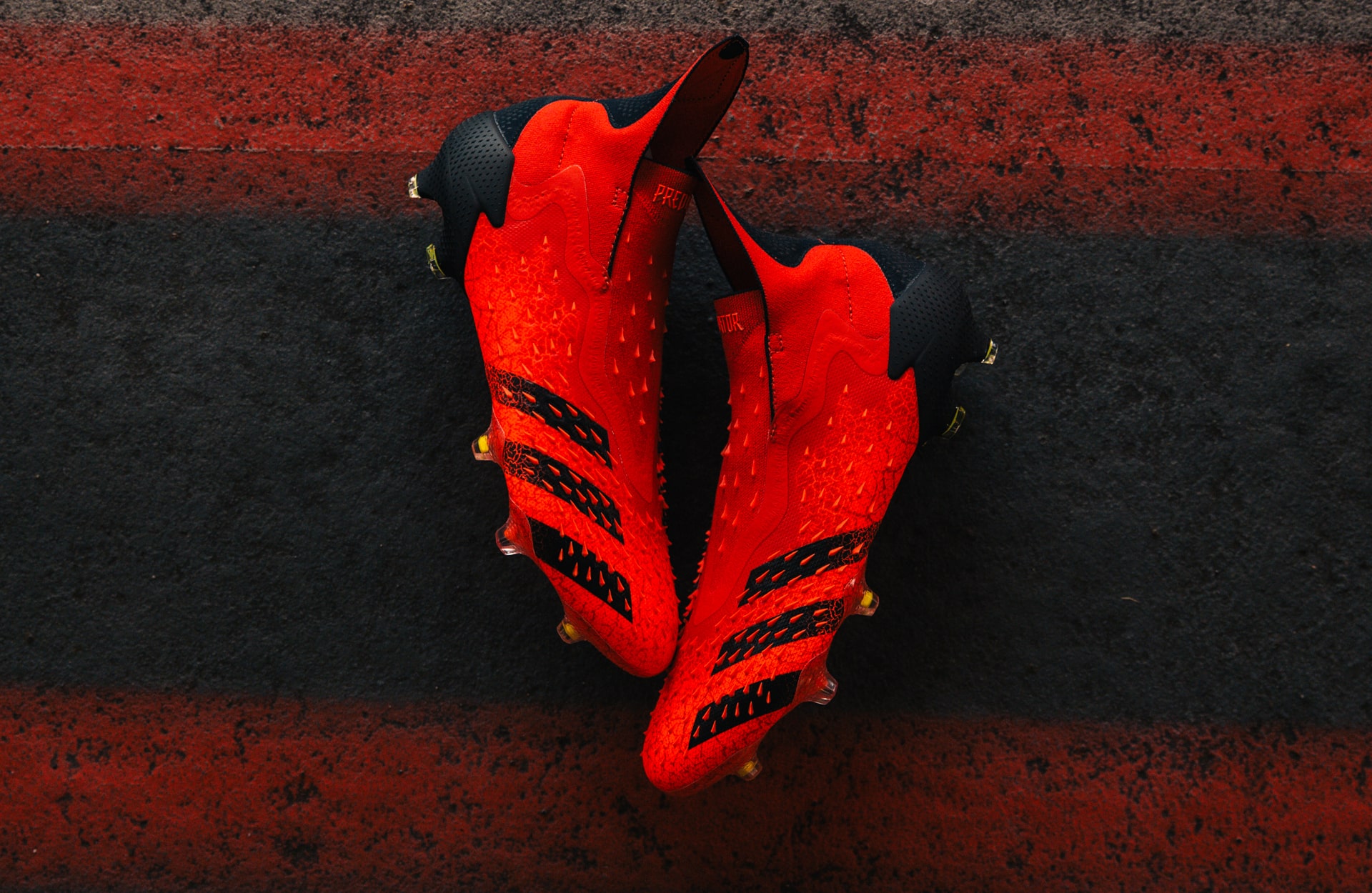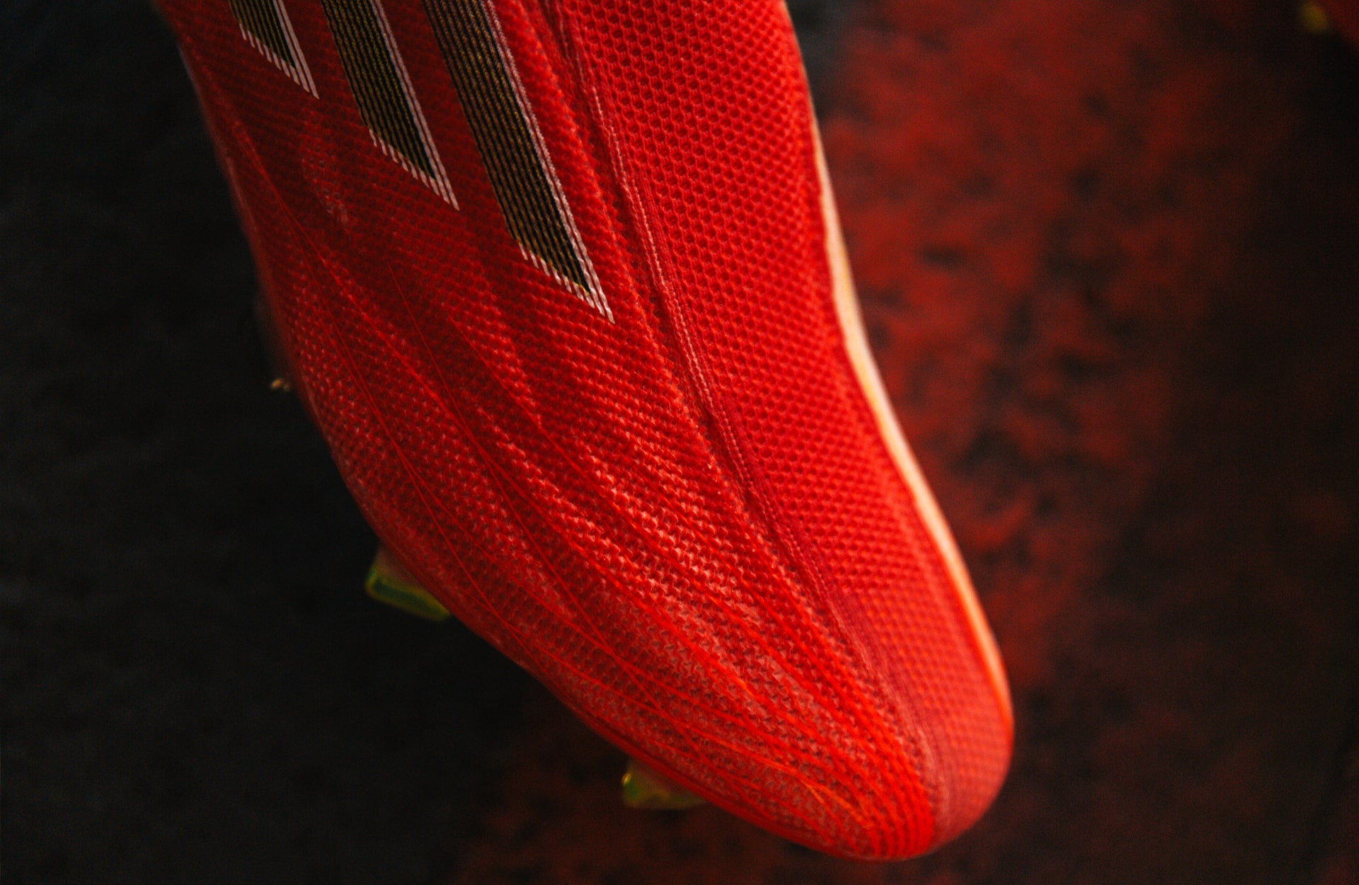 So the ‘Meteorite Pack’ brings a uniform red look to the Three Stripe’s roster ahead of the new season. The idea of the red is all centred around the flagship boot of the pack – the X Speedflow – and it’s affinity for being just all-round fast. So the Predator Freak adopts the same look, with black accents appearing on the Three Stripes and on the heel cup. A closer look at the upper shows of a textured appearance that’s reminiscent of one of the Predator’s most unique looks of recent years, the Dragon Predator. Tech-wise it’s as you were from the ‘Superspectral Pack’, just dressed up in a new suit for the start of the season.