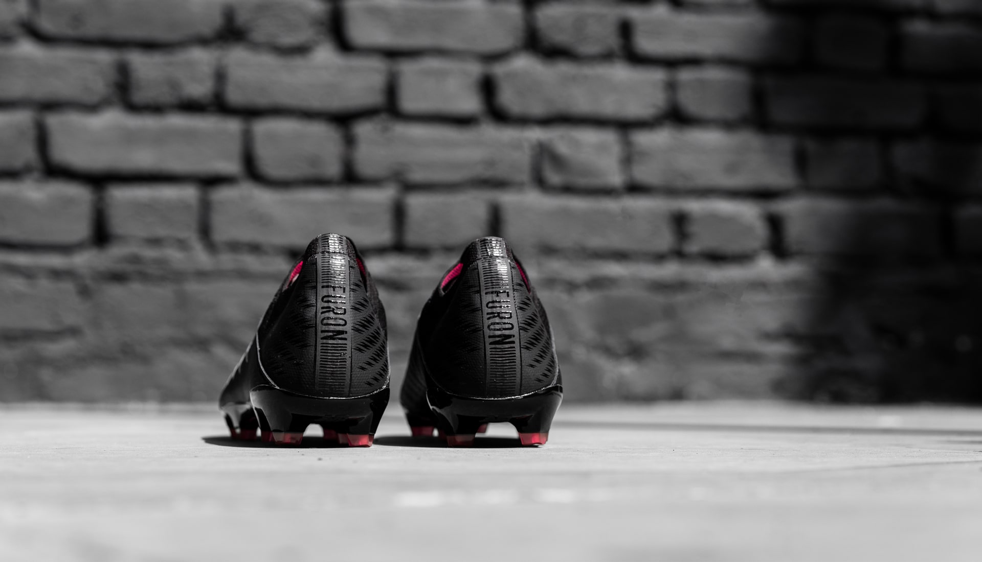 The Furon v6+ features an embossed premium leather vamp integrated with a soft knit collar streamlined for support. The enhanced low profile knitted collar provides a locked in feel.