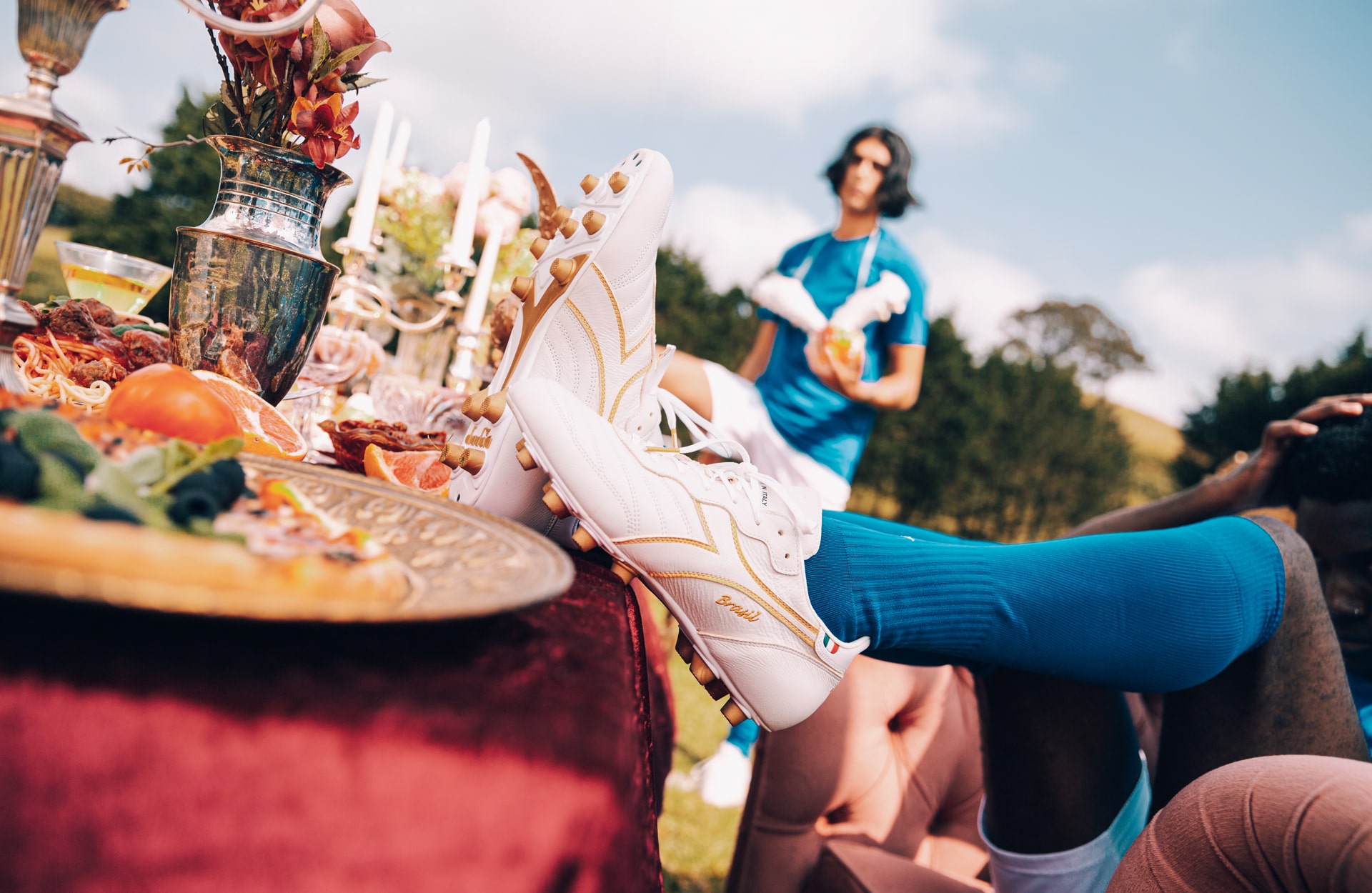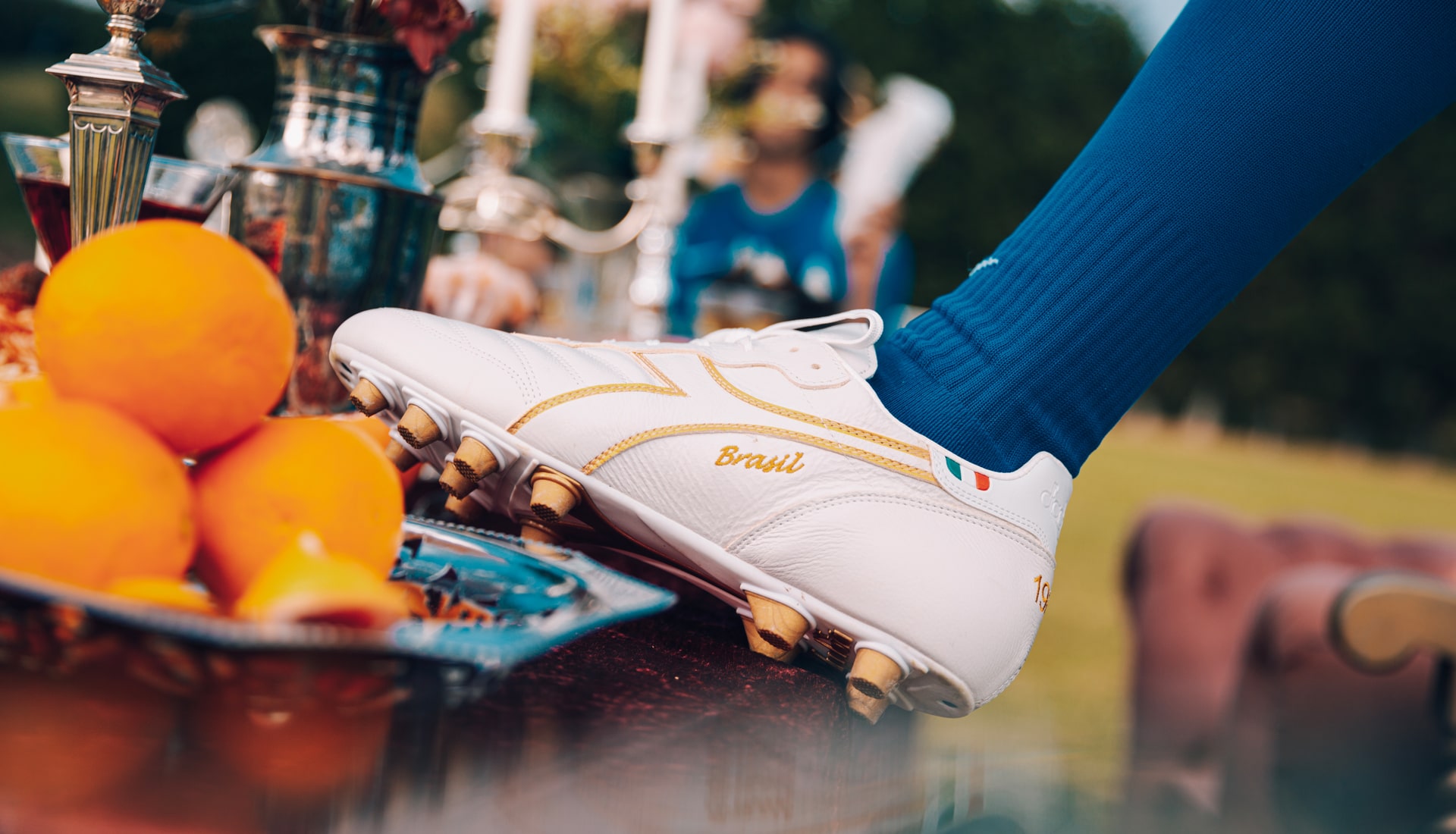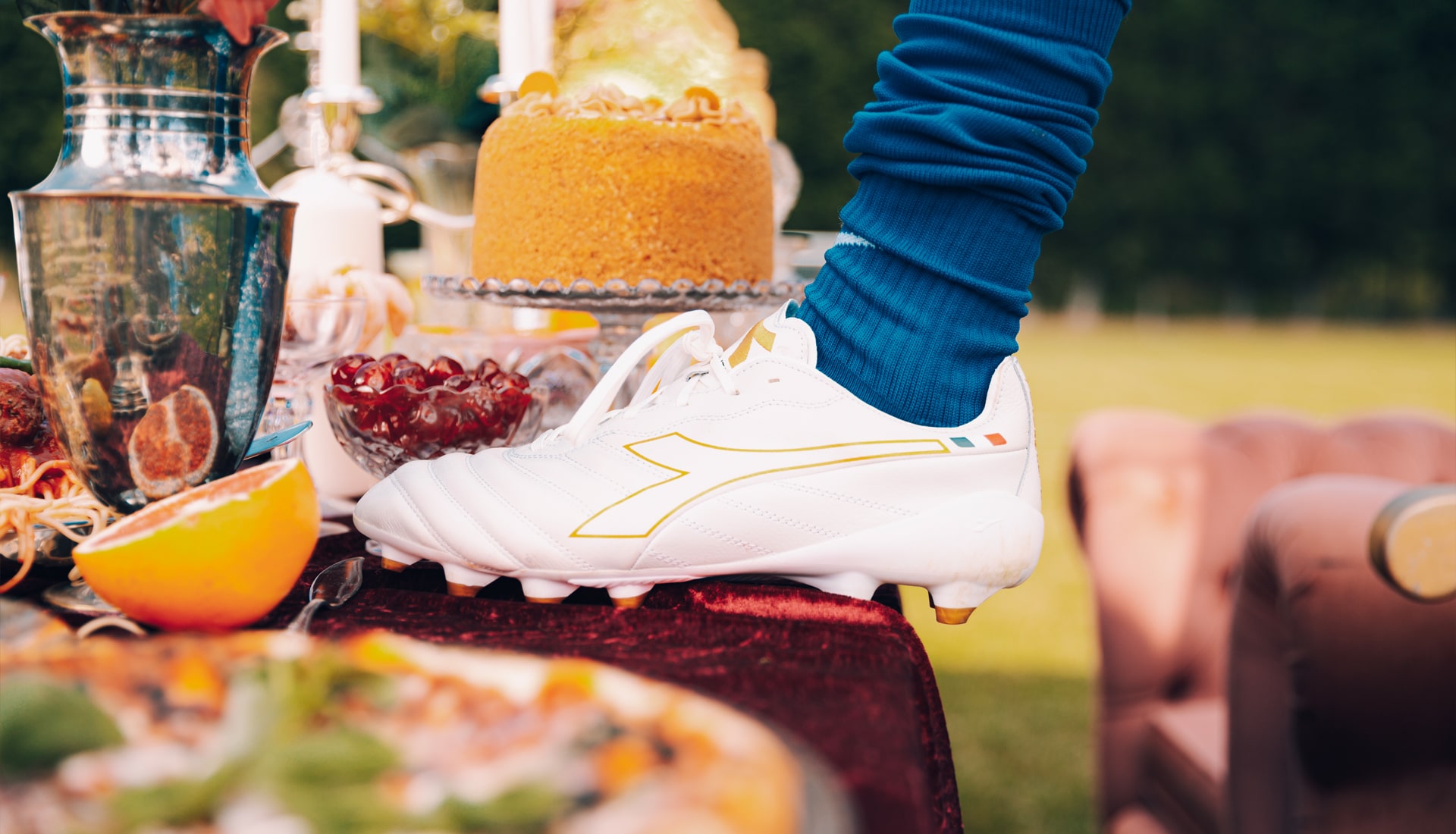 The white base provides a fresh, clean look, while the gold details offer up a regal feel. Unlike the limited edition “Gold” release, which wrapped the whole boot in the shimmering colour, here the gold is used sparingly but to striking effect. On the iconic Brasil it lines the Diadora logo down the sides of the boot and the “Brasil” wording, while the only other appearance of the gold on the upper is on the “1984” sign off on the heel. The gold colour is also located on the studs.
