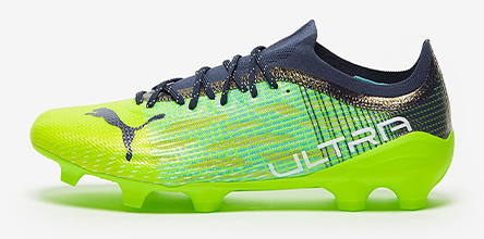 For the Ultra 1.3, it’s a a far more uniform look, with the green and turquoise dominating the upper in a 50-50 split. The navy settles on the tongue and collar area. It features a re-engineered lightweight MATRYXEVO woven upper featuring technical Carbon yarns and transparent Mono yarns. The new upper combines with a brand new Speedcage to create multilayered support for rapid movement.
