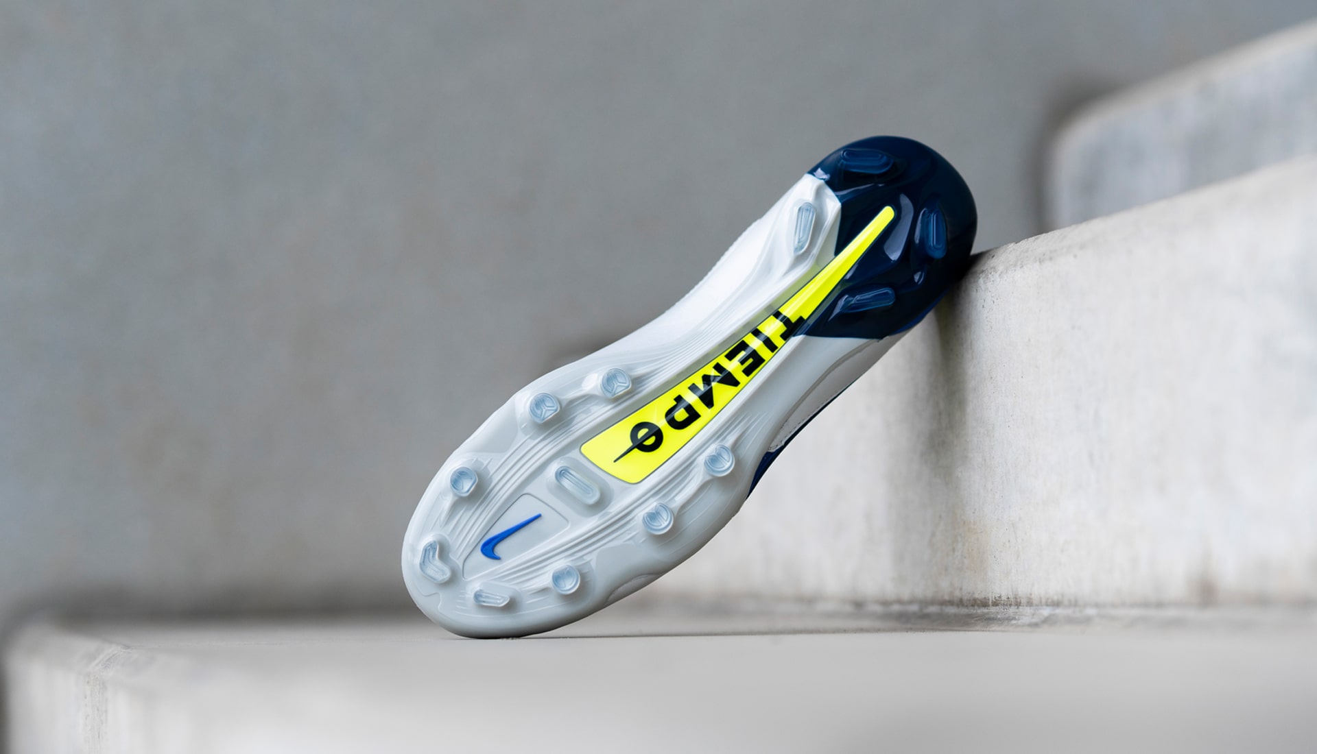 So now we get up close and personal with the new look for the Tiempo Legend 9, which picks up the same colourings as the other boots from the pack, but rearranges them, making “Grey Fog” the dominant colour, with the “Sapphire” wrapping around the heel and the “Volt” flashing through the Swoosh.