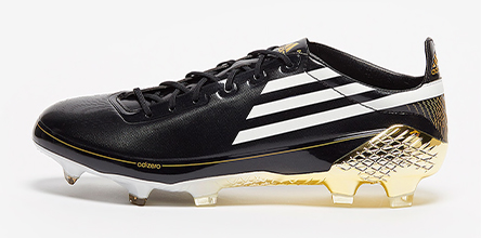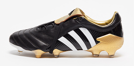 Stop whatever it is you’re doing and take in the majesty of adidas’s latest trip into the archives. This is the limited edition Legends Pack, which features the Predator Pulse, F50 adizero, and adiPure, all dusted off and given a sublime black and gold paint job.