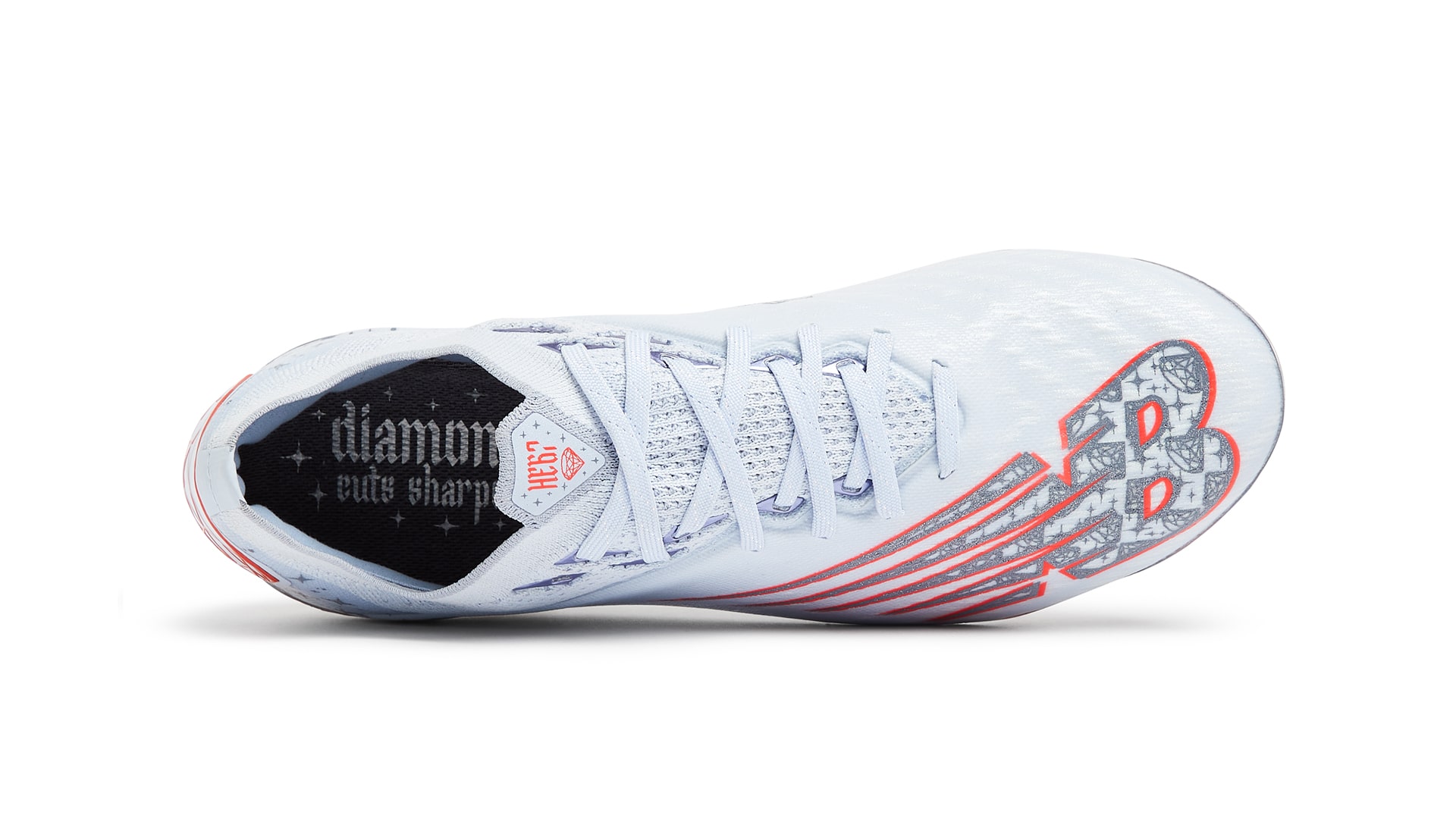 The custom design of the Furon v6+ ‘Diamond Cuts Sharper’ features pops of electric red across the upper and iridescent soul plate. In addition, a bespoke gemstone graphic and Harvey’s squad number are included across the heel and tongue of the boots, alongside sparkling stars, in recognition of a diamond’s brilliance.