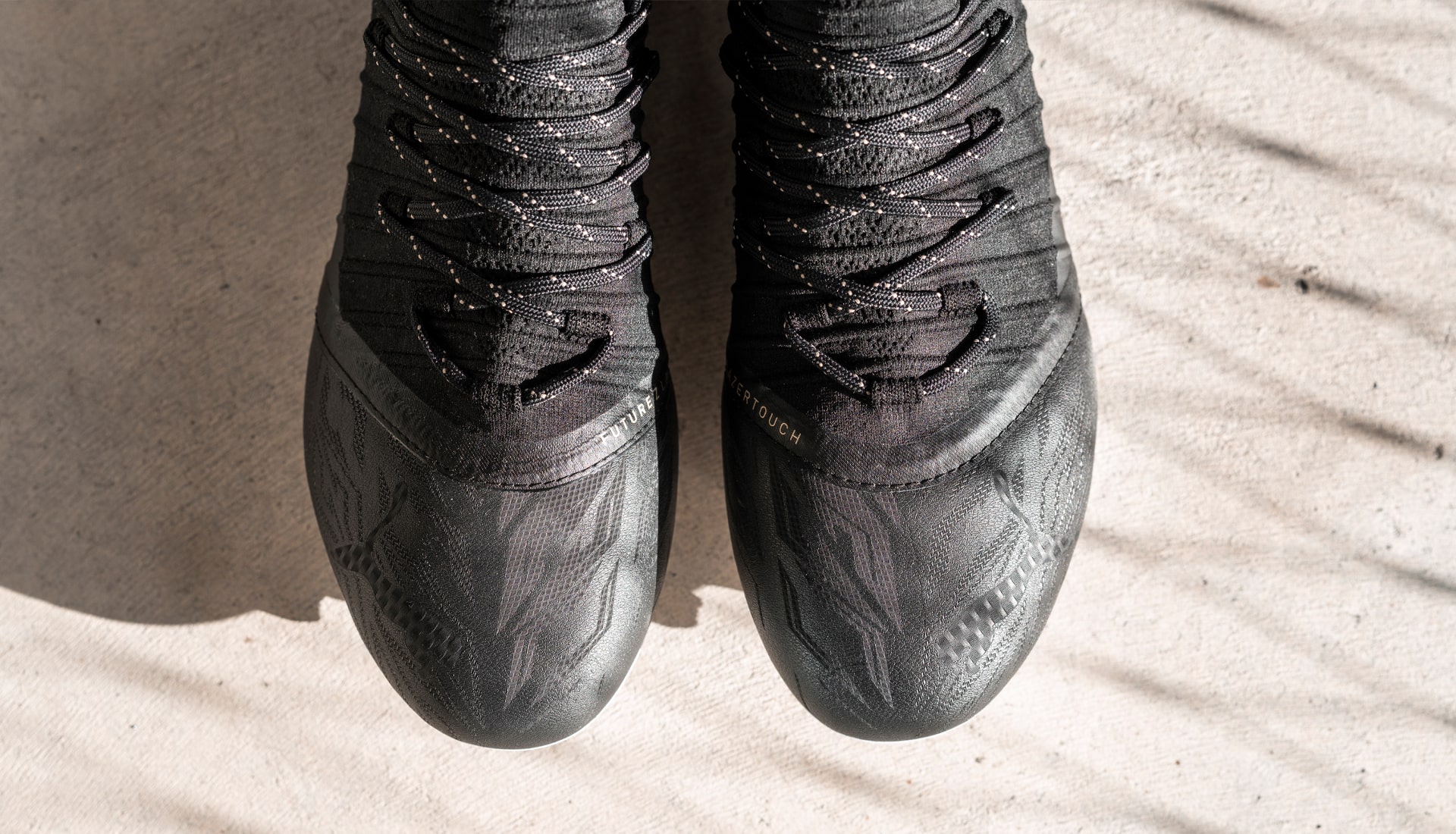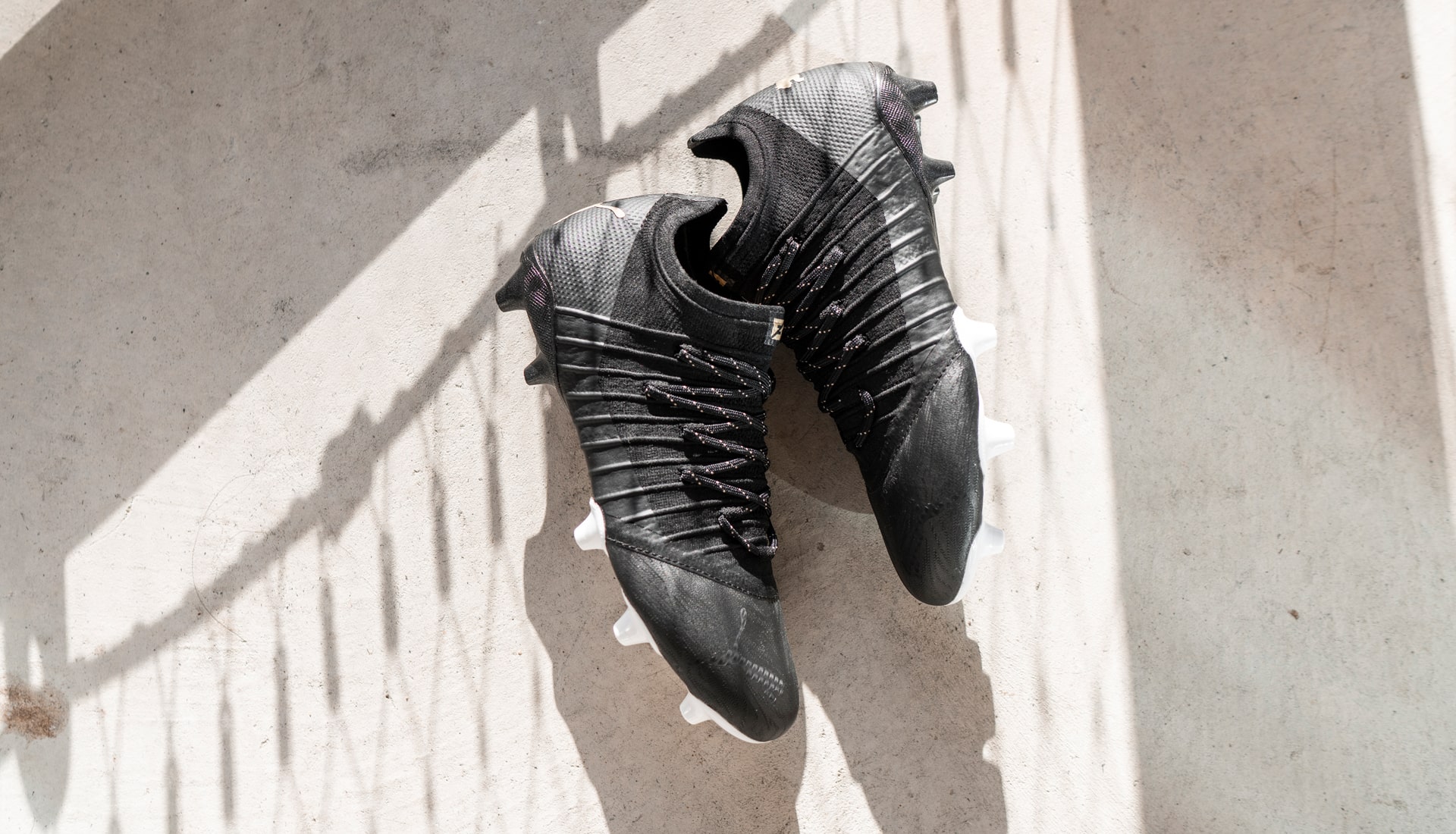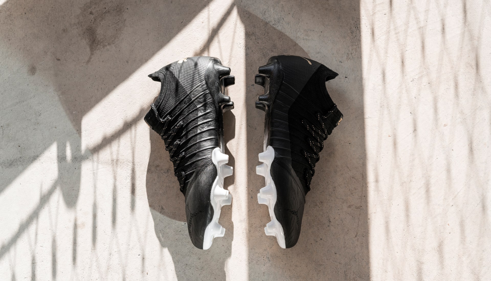 The Future looks good in leather. PUMA offers up tradition with a twist with the Future Z 1.3 ‘Lazertouch’, which arrives in premium leather with a lazer-etched design, finished in black with gold details.