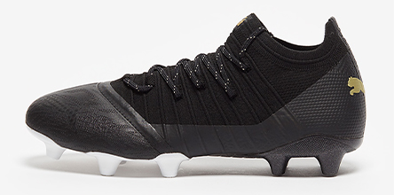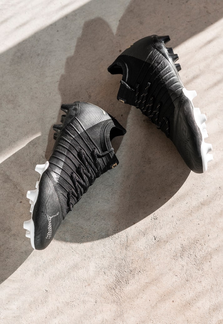 The Future looks good in leather. PUMA offers up tradition with a twist with the Future Z 1.3 ‘Lazertouch’, which arrives in premium leather with a lazer-etched design, finished in black with gold details.