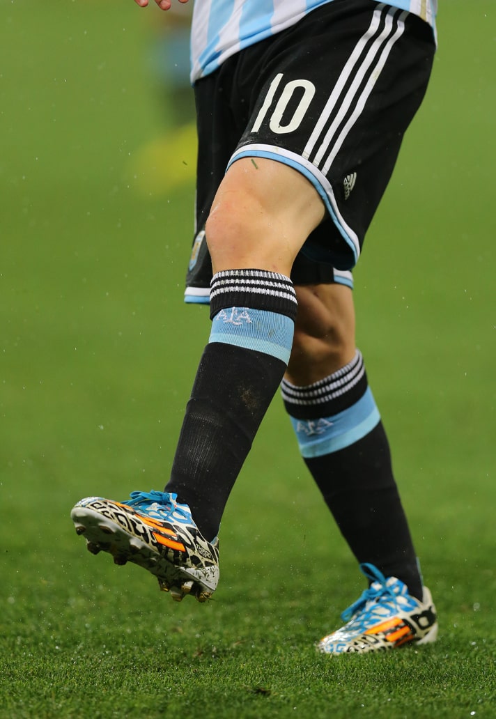 Almost every adidas player wore the Battle Pack during the tournament, including Mesut Özil, Dani Alves, Luis Suárez, Oscar, Philipp Lahm, Robin Van Persie and of course Lionel Messi, who was the proud recipient of his own signature edition F50, complete with a blue and white pattern to celebrate his nationality. In fact, adidas boasted 265 athletes at the tournament, which equated to 36 percent, second only to Nike (383 athletes, 52 percent), and the Battle Pack was the ultimate visual trigger, alerting viewers instantly to what player were affiliated to the brand.