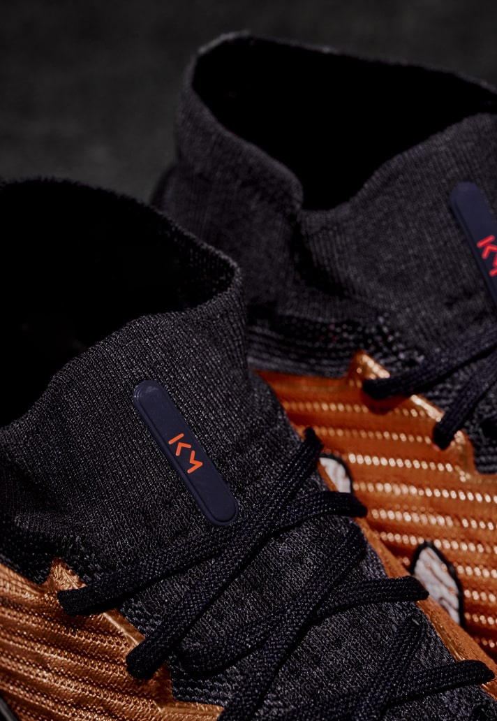 The Frenchman’s new signature Nike Air Zoom Mercurial Superfly IX comes in the familiar guise of the ‘Generation Pack’, with that metallic copper upper dominating the look. At first glance, Mbappé’s new signature edition doesn’t look all that different from the regular Superbly from that pack – then one that he’s worn to score three goals in the tournament already. But, as Mbappé himself was only too quick to point out, the signature details pop on the heel of the soleplate, where the Tricolore blue, white and red appear. Further than that, the name of the player for whom the boot has been created appears on the lateral side at the head of the Swoosh, with the Mercurial ‘M’ of course appearing at then start.
