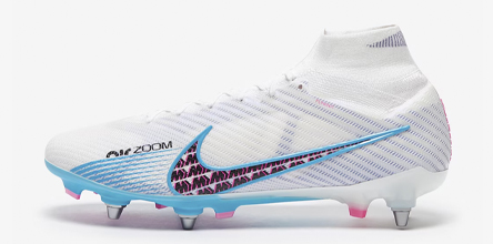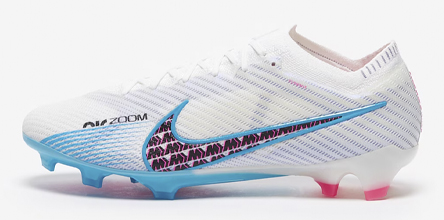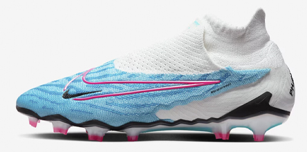 The Air Zoom Mercurial, in both Vapor XV and Superfly IX guise comes in a “White/Baltic Blue/Pink Blast/Indigo Haze” colourway, with a strong connective link between its look and the Phantom GX’s presentation. The Air Zoom Mercurial comes with a three-quarter length Zoom airbag – Nike’s first-ever soccer-specific Zoom Air unit – and it sits directly inside of the plate of the boot, bringing the foot closer to the ground for an even greater sense of snappy, propulsive energy return.