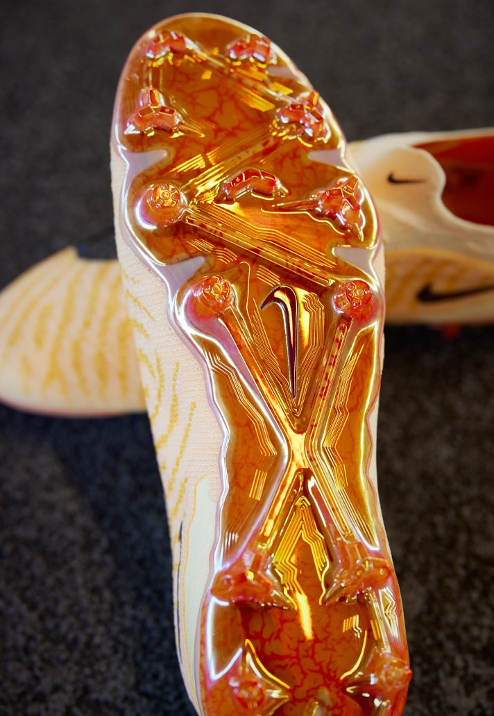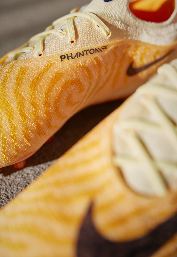 The special Nike Gripknit technology is accentuated thanks to the vibrant flame-inspired colourings, while then chrome soleplate features fire graphics. The look is then finished off with a beautiful matte crackle execution on the contrasting Swoosh down the side of the boot, which itself was inspired by smoke, strengthening the fire imagery.
