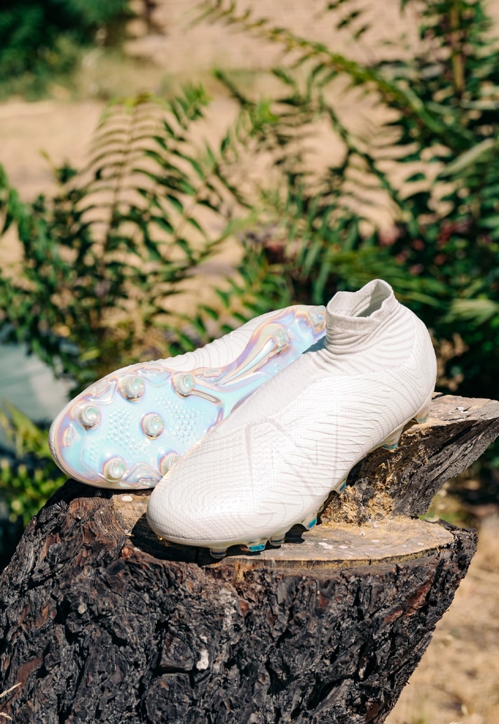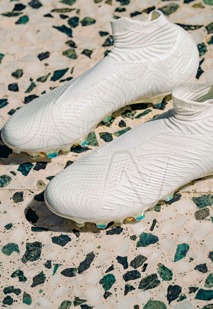 Completely reimagining New Balance’s Furon v4 and Tekela v7, the ‘Rare Force’ pack sees the boots arrive in a clean, all-white colourway that really accentuates the beauty of the construction of each boot. The design, and indeed the pack name, has been inspired by ‘rare forces’ that exist within nature and elicit some of the most visually remarkable outcomes such as pearls, glaciers, and crystals, and this can be seen both in the upper detailing and in the unique radiant sole plate treatment.