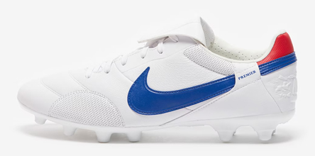 In what's expected to be one of Nike's last kangaroo leather football boot releases, following the brand's recent announcement that they will no longer be using k-leather beyond 2023, the much-loved Premier III gets a new lick of paint with a fresh "White/Game Royal/University Red" colourway for the Spring season.