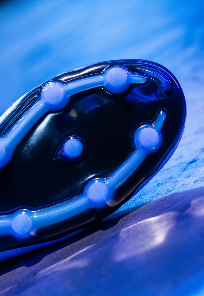 For the Tocco 3, the “Malibu Blue” dominates the look, despite taking up final billing in the official colourway of “Allure/Black/Malibu Blue“. The Tocco 3 sees Umbro introducing FSDX Dyneema Leather on the boot’s forefoot. 15 times stronger than steel yet paper thin, Dyneema fabric is fused with leather to make Tocco 3 boots lightweight and ultra-thin, offering a greater touch sensation on the ball.