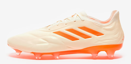 Finally, the pack is rounded out by the COPA Pure, which has a different visual appearance, with a “Off White/Team Solar Orange/Off White” colourway seeing the off white as the main base colour, and the orange taking on the supporting role through the Three Stripes and soleplate.