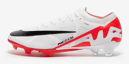 Then we get a striking new look for the Air Zoom Mercurial Vapor 15 and Superfly 9. Like the Tiempo, it sees a predominantly white base, albeit here it comes with a strong heel graphic that carries the 'Air' branding. Black then features in the Swoosh branding on the forefoot and on the stud tips.