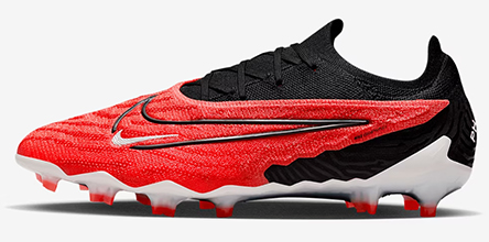 Finally, we get the Phantom GX, in which the Bright Crimson plays out on the Gripknit upper, with black on the heel and white flashing through the solepate. Like the Mercurial, the Phantom GX is available in two variations: lowcut, and dynamic fit. Brother to the Phantom Luna, the GX's main feature is Nike Gripknit technology, which provides the perfect interaction with the ball, offering just the right amount of stick – sticky enough to gain extra control while not being too sticky.