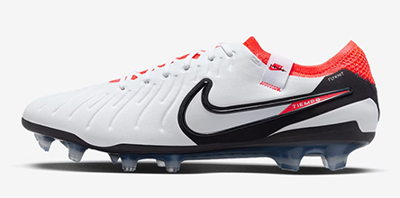 Of course, the main talking point around the Tiempo Legend 10 is the lack of leather, replaced instead by FlyTouch Plus, which helps make the Tiempo Legend 10 the lightest Tiempo to date, as well as 55 percent less water-retentive than previous versions. FlyTouch Plus also has a grippy feel that gives players a consistent touch on the ball no matter if it’s wet or dry, and it looks great in white.