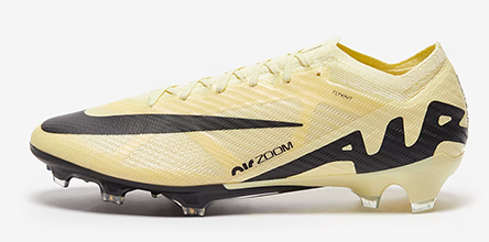 The Air Zoom Mercurial, available in both Vapor XV and Superfly IX, is arguably the most brash of the lot in terms of aesthetic execution. It comes in a “Lemonade/Black” colourway, with those “lemonade” shades acting as the base, with the black operating in black block looks on the Swoosh and “Air” branding for what is a simple but effective two-tone presentation.