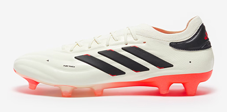 Then there's the COPA Pure 2, which comes in a sleek "Ivory/Core Black/Solar Red" paint job. As with the X Crazyfast, the red is restricted predominantly to the underside, leaving that nice off-white Ivory upper to contrast with the black branding.