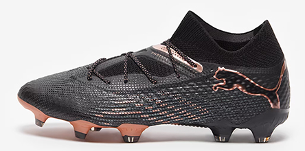Every year, PUMA offer up their roster in a blacked out guise known as the Eclipse pack, providing an understated alternative to the usually bright and bold on-pitch colourways that you see on the pros, currently being the Phenomenal Pack. And so it is again with 2024, with the all-new Future 7 Ultimate talking its place in darkness alongside the Ultra Ultimate and King Ultimate for the first time. And for 2024, PUMA include some subtle hits of “Copper Rose” on the designs, adding an elegant element to the collective pack look.