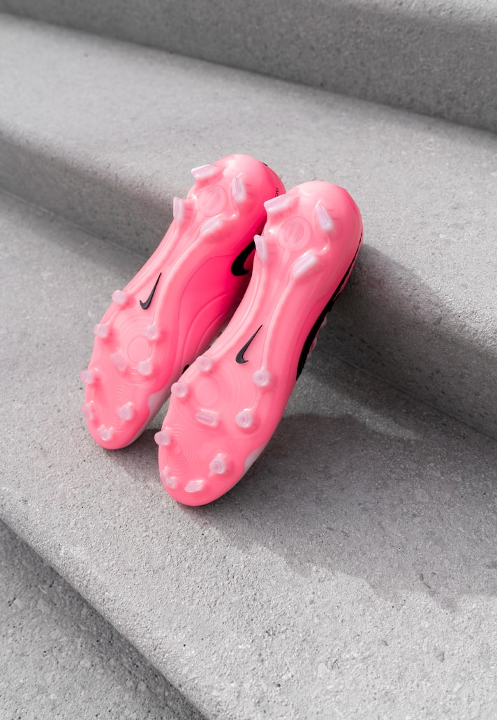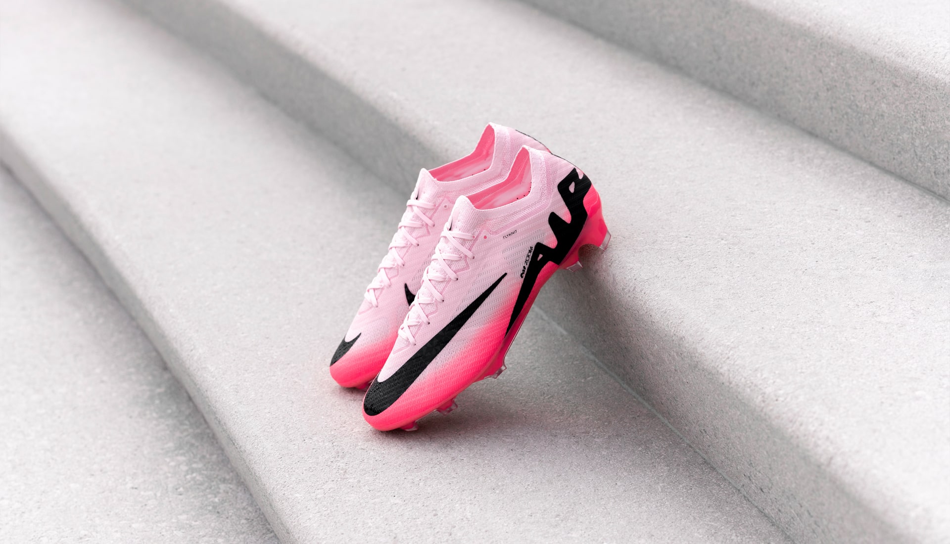 So far in the 23/24 season Nike have been ‘Ready’, ‘Peak Ready’, and then ‘Mad Ready’ with their boot packs. Now they’re still mad, but playing off of 2016’s ‘Spark Brilliance’ pack, released ahead of the Euros in France, they’re all about ‘Mad Brilliance’, coating the Air Zoom Mercurial (in both Vapor XV and Superfly IX), Phantom (in GX and Luna), and Tiempo Legend X in pink hues that are sure to standout on pitch.