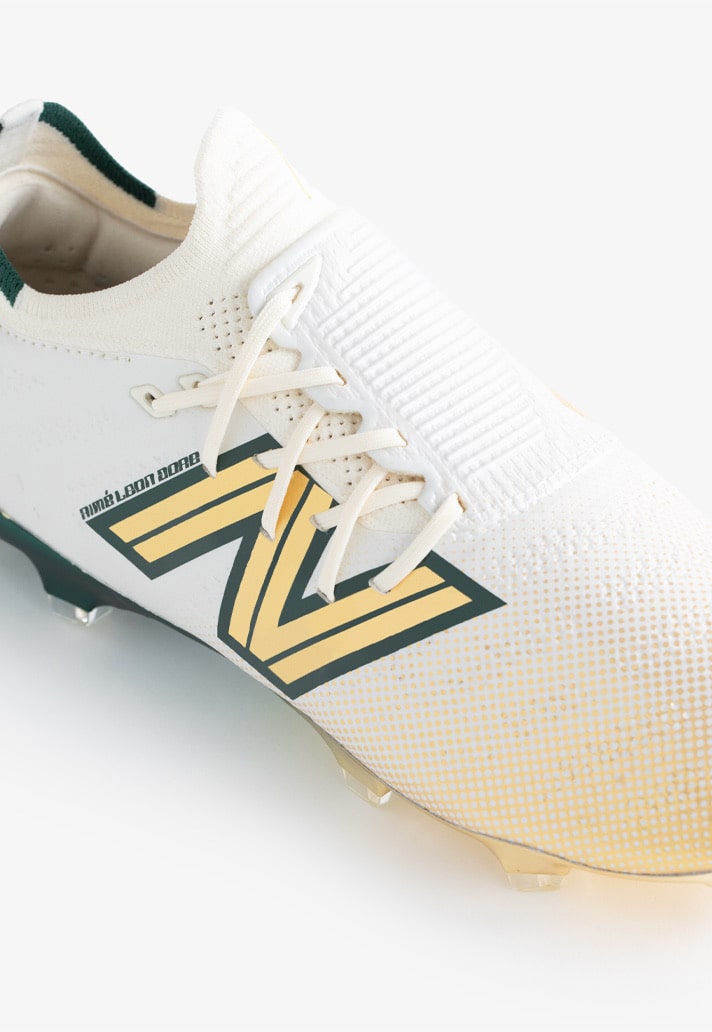 The collaborative take on the Furon 7+ is an expression of the brand’s refined aesthetic, infused with early 2000s performance design cues. A gradient take on the signature green, gold, and white Aimé Leon Dore colourway is applied across the boot’s upper and on the lightweight, combination nylon and TPU plate, with the toe to heel progression of colours symbolising future victories on the pitch.
