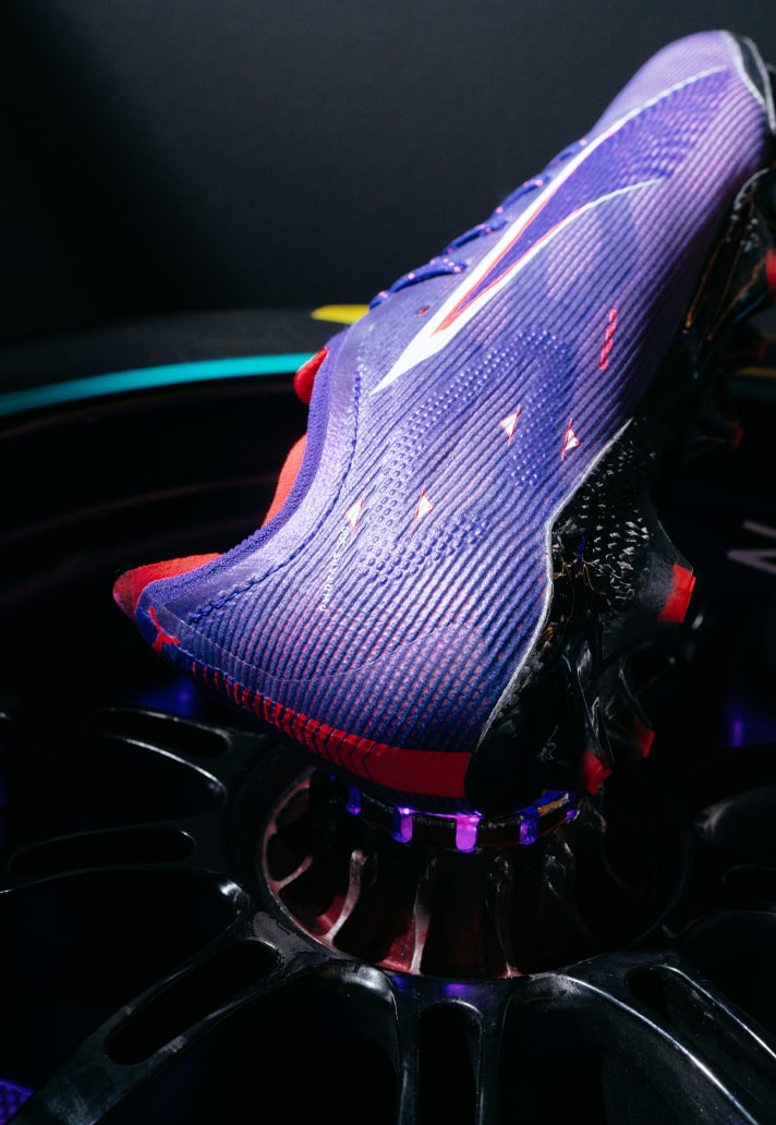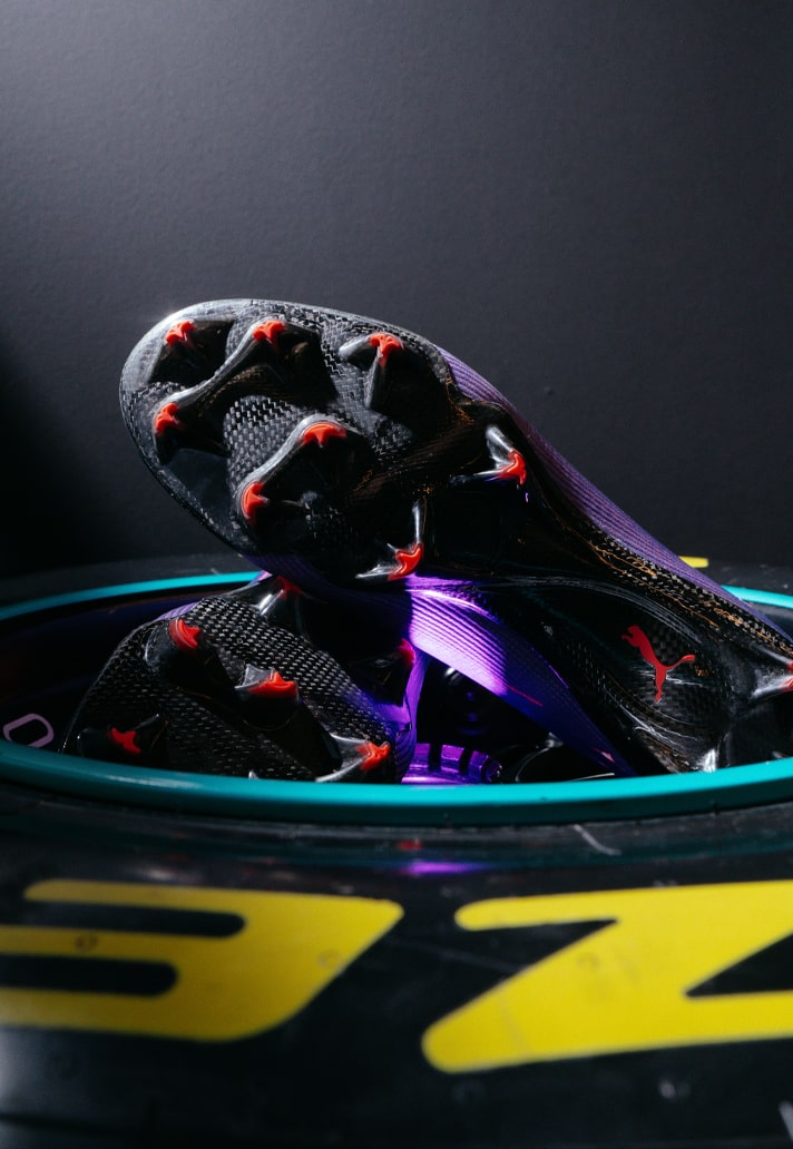 “The new SPEEDSYSTEM is PUMA’s proprietary outsole design that combines a high-performance fiber base material with an external heel counter and a revolutionary stud system to maximize energy return for faster acceleration. The three studs on the heel improve braking, this is because there is a higher traction when rear studs are closer to the centreline.”