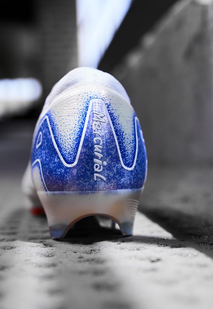 The pack’s colourway is inspired by Nike’s co-founder Bill Bowerman, who was known for taking a ballpoint pen and “dot” a Swoosh on the side of his athletes’ spikes to save the weight from stitching on a logo. Branding-wise, that “AIR” callout has shifted from the side positioning to instead wrap around the heel, carrying with it a nice handwritten-styled "Mercurial" and "Air Zoom" callouts. The Swoosh still sits on the forefoot, while the Air Zoom unit is highlighted on the soleplate in orange.