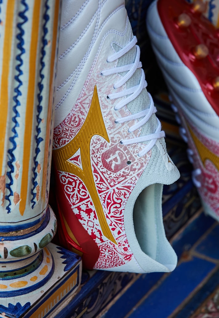 Featuring a rich palette of maroon-red, off-white, copper, and black, the aesthetic of the collection mirrors the colours of the city’s football team, while it also incorporates traditional Spanish tile patterns that are emblematic of Sevilla. The design choice was selected by Mizuno to reflect Ramos’ deep connection to his roots and to celebrate the intricate artistry of Spanish tiles – an art form that, like his football career, demands time, dedication, and passion.