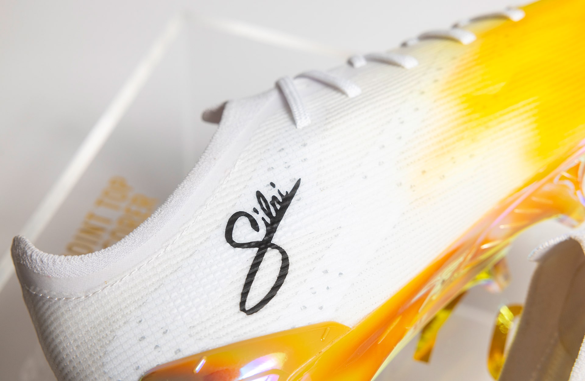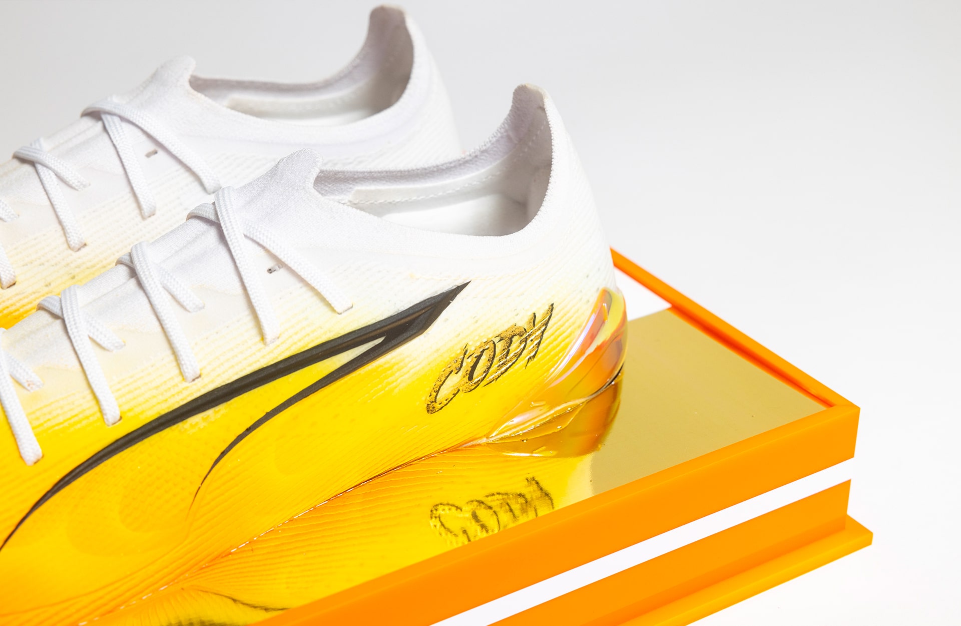 For the design of the boot, PUMA turned to regular collaborator, Silni, and the French graphic artist went about putting his personal touches to the design. And that’s acknowledged by the presence of his signature on the inner heel.