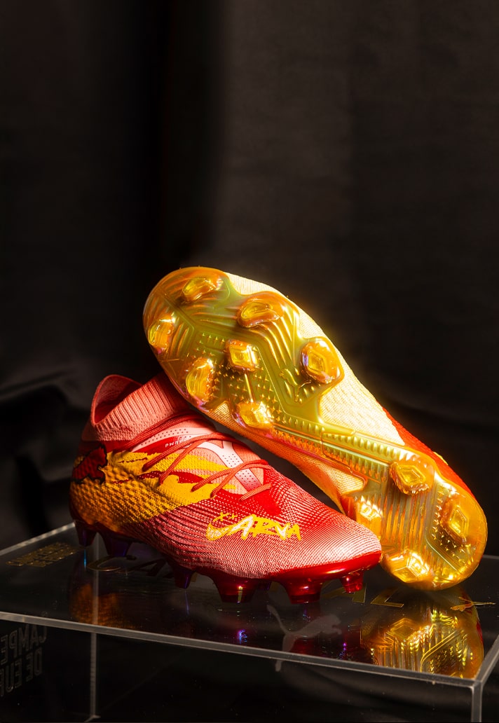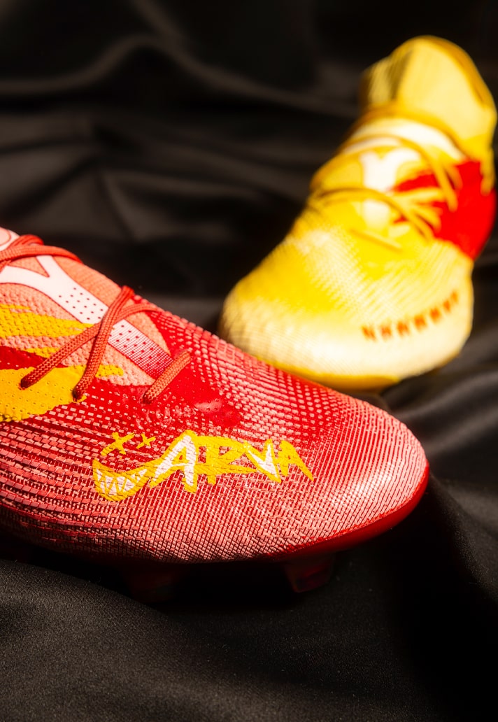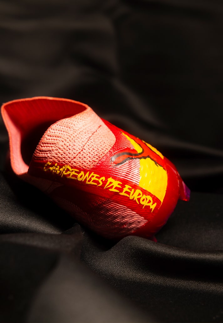 As with Gakpo’s boot, the design for Carvajal’s and Cucurella’s boots comes courtesy of French artist and long time PUMA collaborator, Silni. It comes as a continuation of the brand’s tagline for the Spanish pair, “CUCU ON THE LEFT, CARVA ON THE RIGHT”, referring to them playing a major role as left and right back for Spain, making the two lanes a nightmare for wingers at the Euros. This is worked into the boots’ design with Cucurella having his nickname “CUCU” feature on his left boot, while “CARVA” is written on Carvajal’s right boot. The boot design finishes off with details like the 7 W’s across the toe area, representing the seven wins that brought them the Euro win, as well as a “Campeones de Europa” on the heel, all held in the traditional red and yellow colours of Spain.