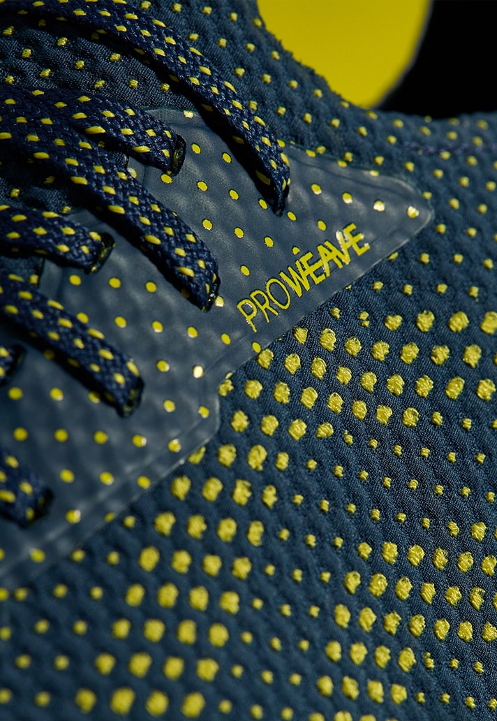 Presented in a launch colourway of “Poseidon/Blazing Yellow/White”, its revolutionary ProWeave upper is again designed to stretch 4-ways, adapting to the foot’s natural shape to provide range of motion without restriction. The unique one-piece upper seamlessly combines the tongue and main body, creating that singular ‘second skin’ fit. An internal support frame provides security for short, sharp, quick turns of pace. In a strive for more sustainability, the upper of the new Velocita Matrix Pro contains 85 percent recycled content.