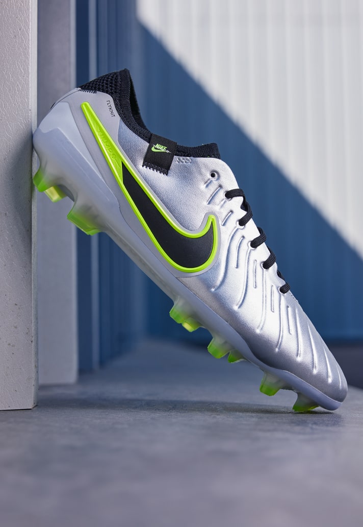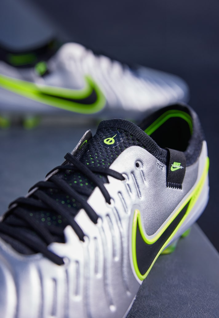 Finally, the Tiempo features the same official colourway as the Phantom, so “Metallic Silver/Black/Volt”, although it’s presented in the reverse of the Mercurial, with silver as the base colour, and black and volt taking up supporting roles through the branding.