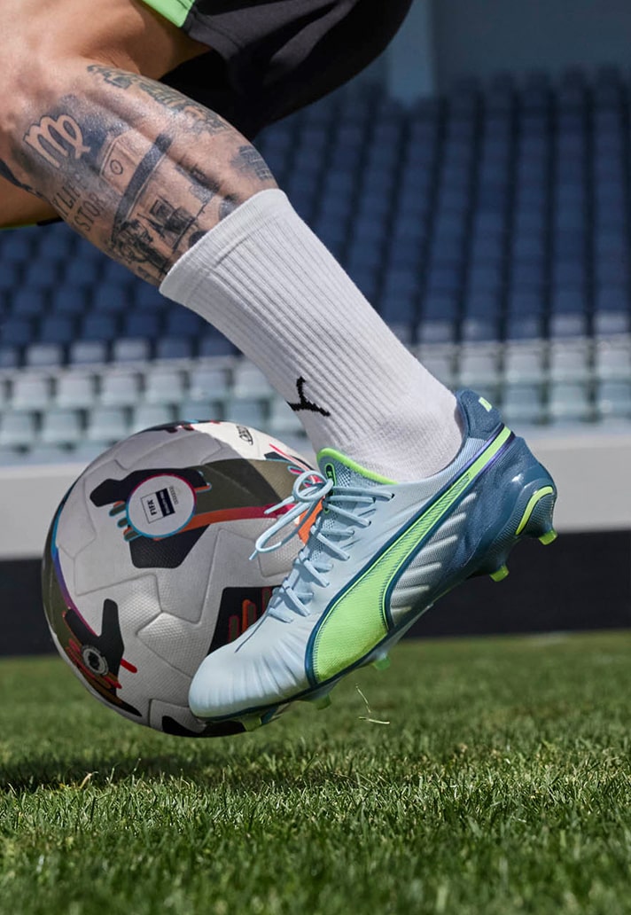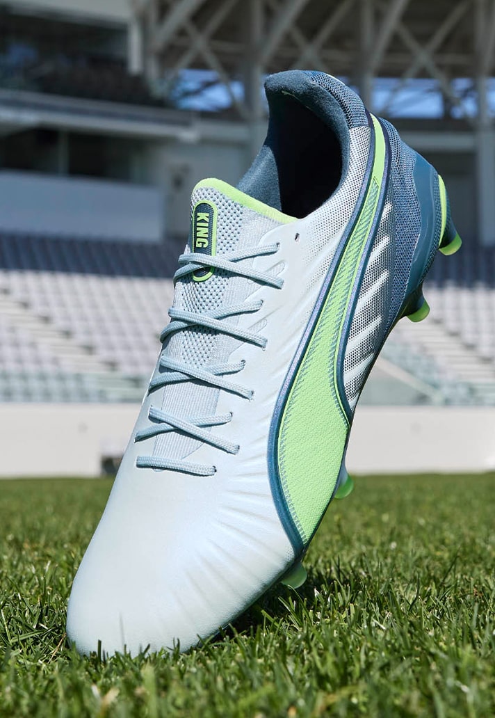 Finally, completing the set is the King. It comes in a Frosted Dew/Fizzy Apple/Gray Skies” colourway, and it features a combination of the non-animal-based K-BETTER upper material and the GRIPCONTROL 3D structure on the medial side for enhanced ball control, optimal touch, comfort, and durability. The lightweight outsole features an external heel counter, integrated stability spine, and conical studs.