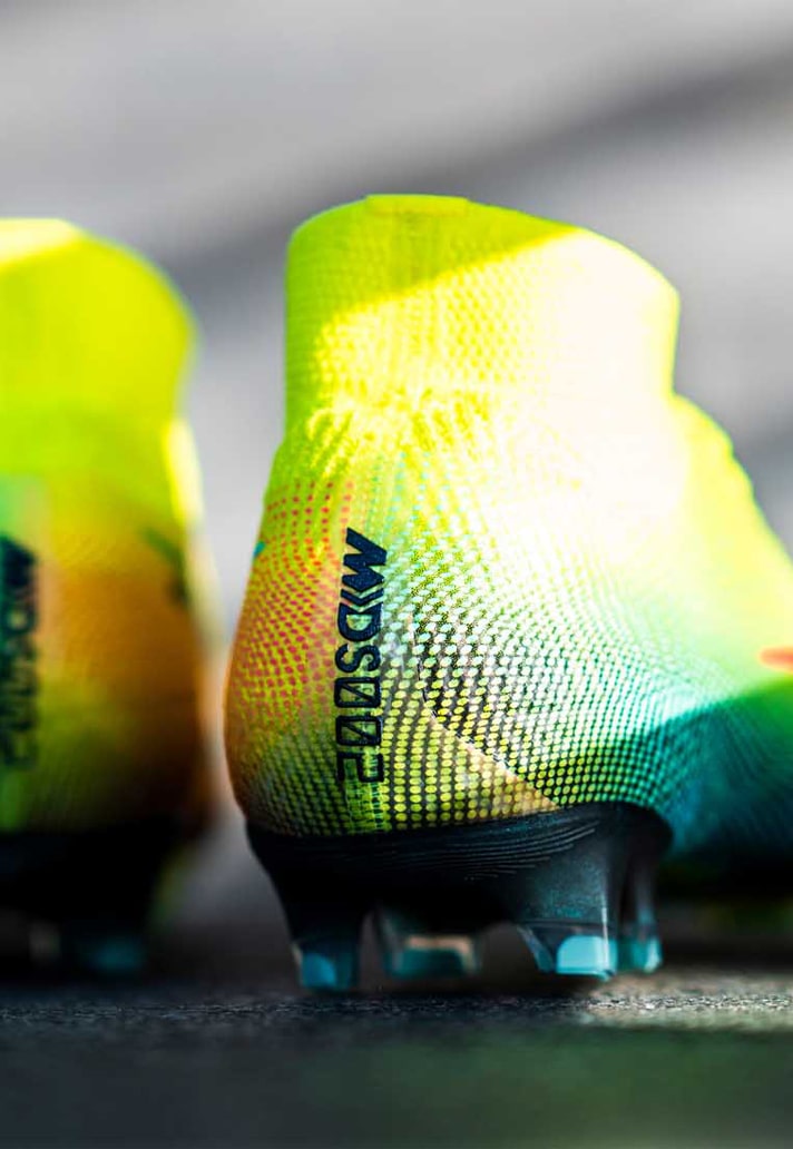 Dropping back in February 2022, MDS 005 was created to the exact specifications of Cristiano Ronaldo, and the design inspiration came from his most powerful tool— the mind. According to Ronaldo – and who are we to argue – a calm mental state means strong decision making, so the boot plays with that in the "Barely Green/Volt/Electro Purple" colourway, slowly transitioning from a tranquil green into commanding hues of turquoise and purple, demonstrating the power generated by a restful aura. Not quite seeing the link to speed as clearly as with the other entries, but just assume it's there and leave it at that.