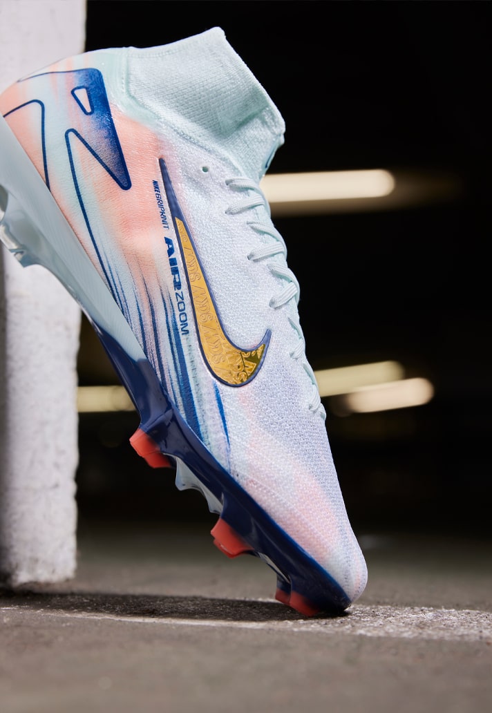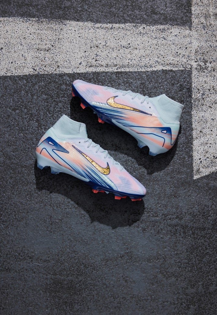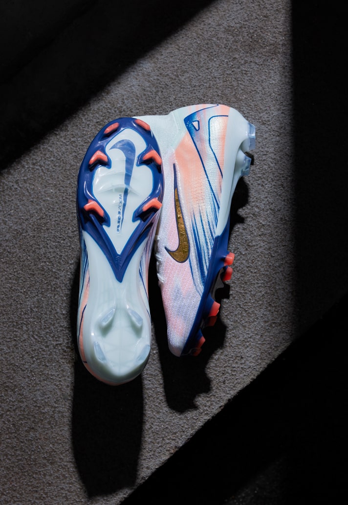 The distorted midfoot pattern represents breaking through barriers, the blue elements encourage mind flow and performance, while the orange promotes concentration and creativity. Then, as a nice final flourish, the Swoosh features the signature Dream Speed logo repeated in gold as a nod to goals and trophies – hallmarks of Mercurial players such as Kylian Mbappé and Sam Kerr, who’ll once again lace up in this edition, along with a host of the game’s fastest players, including Vinicius Jr., Lauren James, Marie-Antoinette Katoto and many more. Oh, and some guy called Cristiano Ronaldo, who may well have been the main inspiration and driving force behind the franchise in the first place.