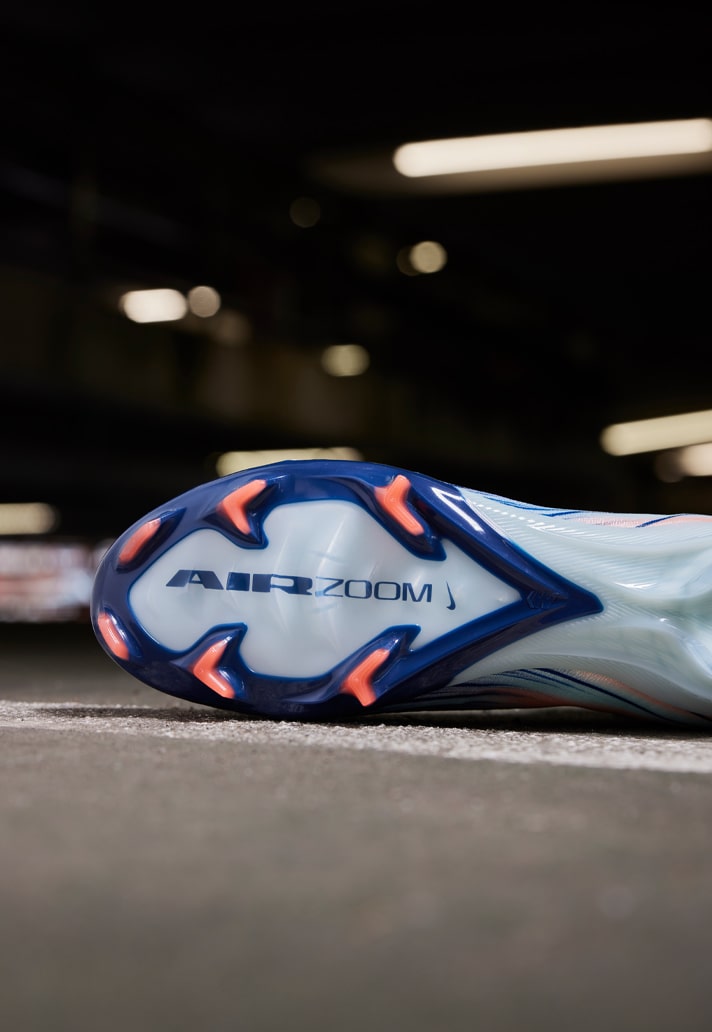 Beyond the aesthetics, there’s also plenty going on tech-wise. The boot features a unique three-quarter-length Air Zoom unit underfoot, which provides springy acceleration, an integrated speed cage structure to keep feet locked in, and a Vaporposite+ upper, which combines a grippy, grid mesh with a premium lining for a more natural feel and optimal ball control.On the underside there’s the tri-star studs to provide multi-directional traction.