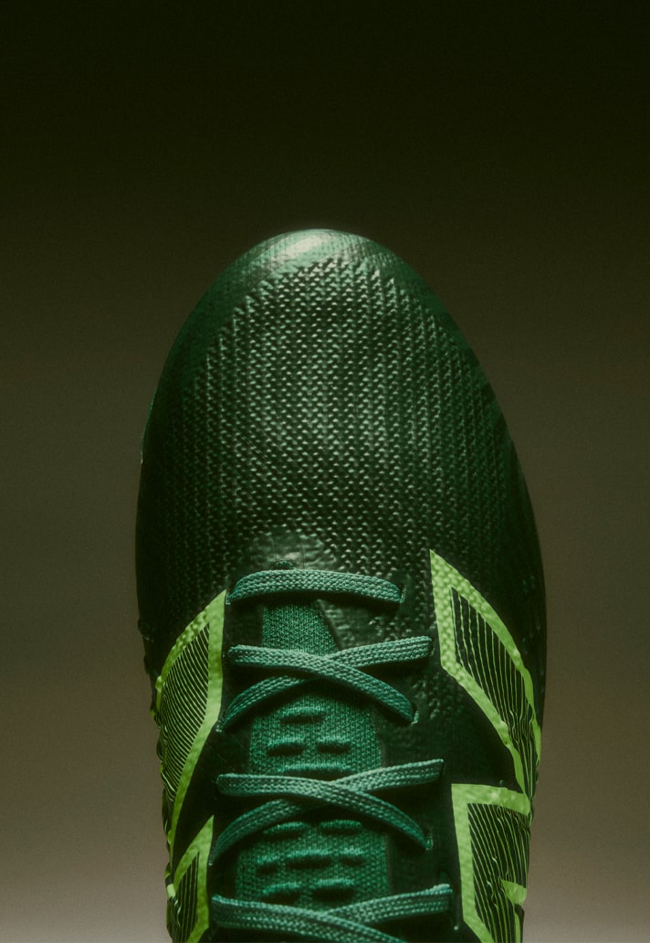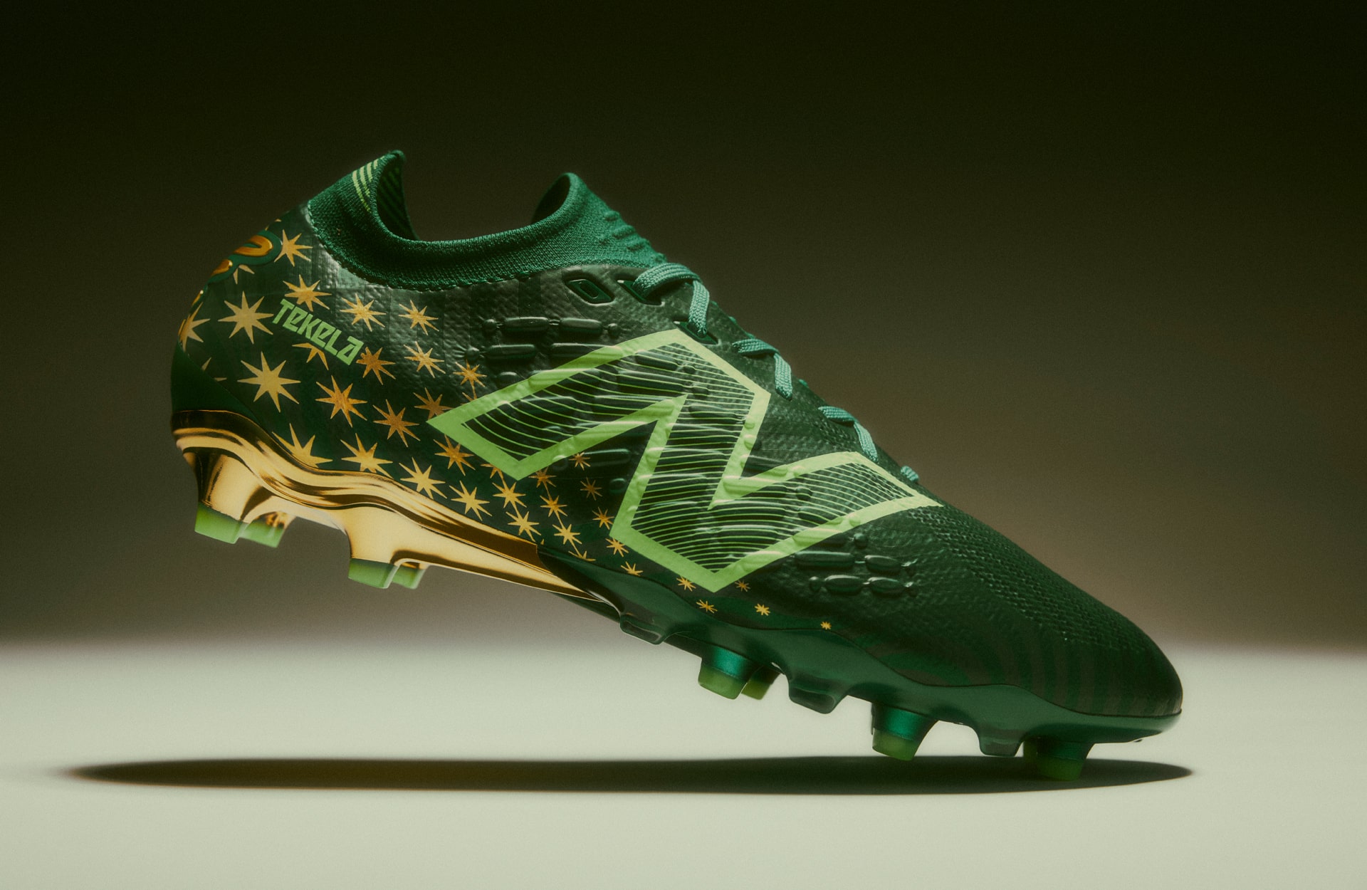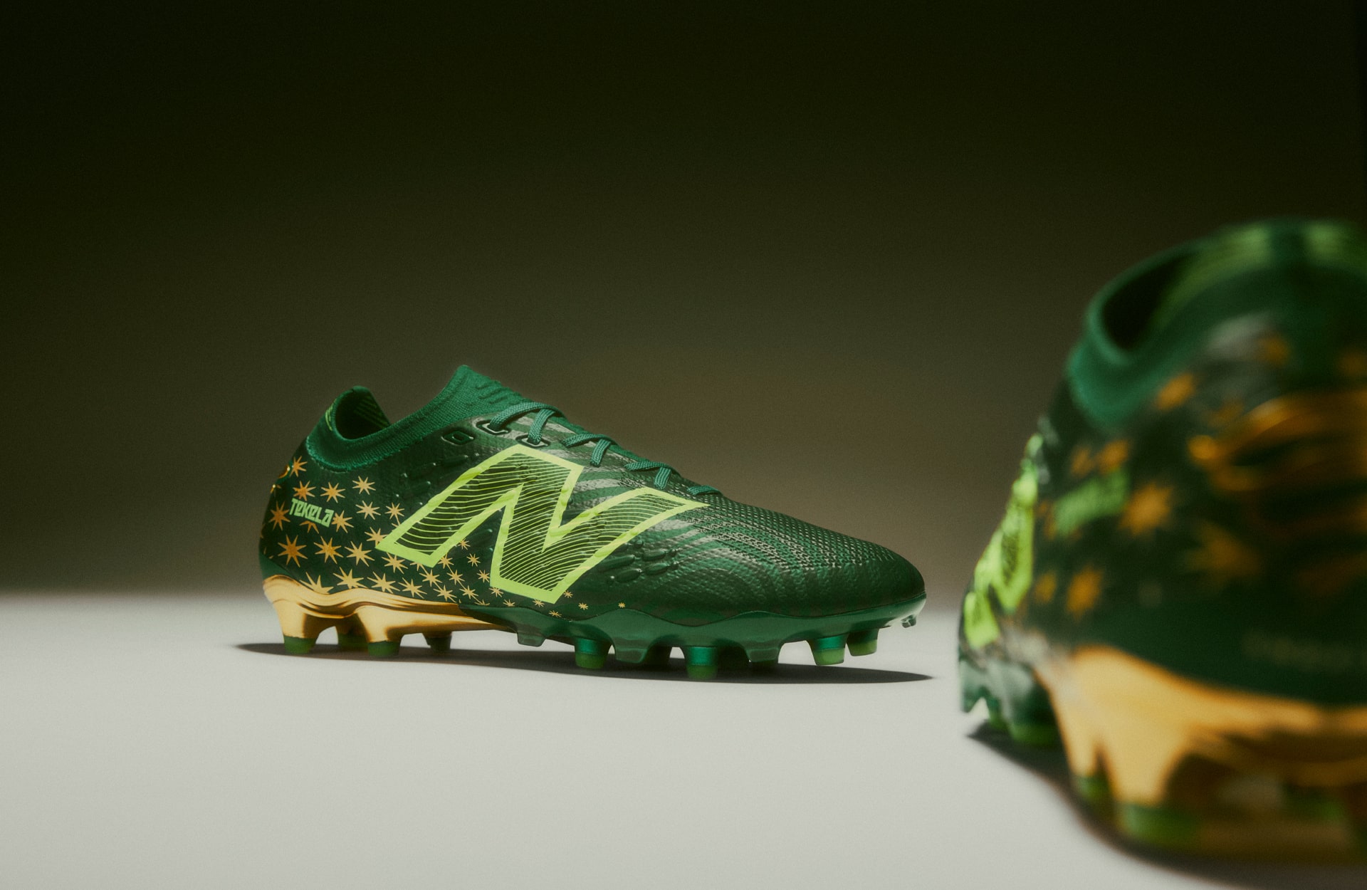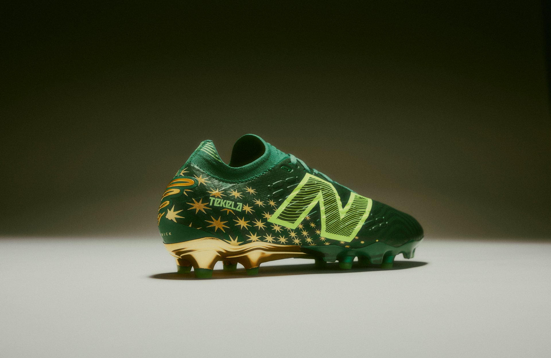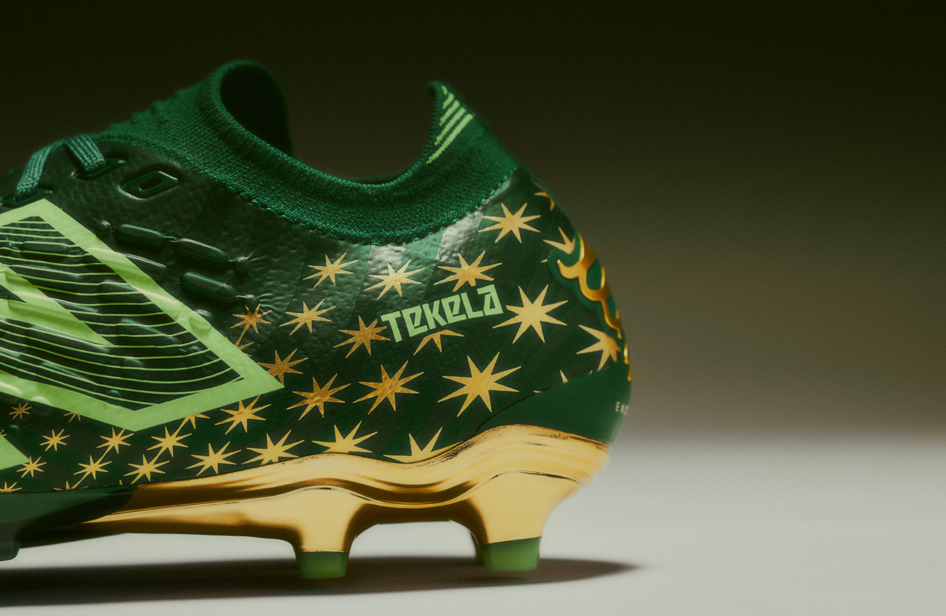 The ‘Irmão’ Tekela arrives in a standout metallic gold and emerald green finish, featuring a two-tone striped graphic that mirrors the flag of Valparaíso. Inside, the sockliner is marked with the letter ‘V,’ while the dazzling gold aglets on the laces carry the words Progresso (‘Progress’) and Paz (‘Peace’) in Portuguese, reflecting the core values of the Goiás region. The heel includes a custom Endrick E9 insignia and a fading gradient of the eight-pointed star that represents the state of Goiás, further rooting the design in the local culture.