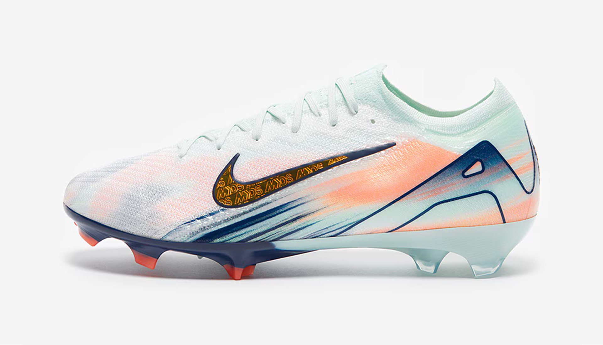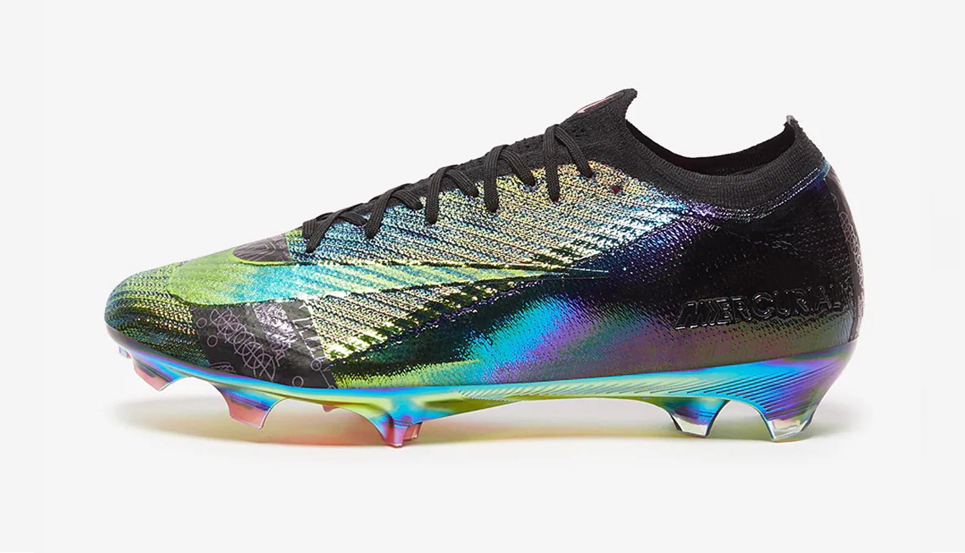 2024 saw the end of the Dream Speed series, but with every end comes a new beginning, and in this case was the Cosmic Speed series. It kicked off with the insanely unique iridescent gold and black presentation for the Vapor XVI and Superfly X. The official colourway of “Gold/Black” isn’t even scratching the surface of what’s going on here. The aesthetics are a rich tapestry of design influence from the Mercurial’s past. Black and gold is one thing, but these boots look like they shine with almost every colour going, from the chromed out soleplate right across that unique upper. It’s achieved through a process called PVD (Physical Vapor Deposition), a vacuum style method of applying thin metal colourways to fabric, and man is it effective.