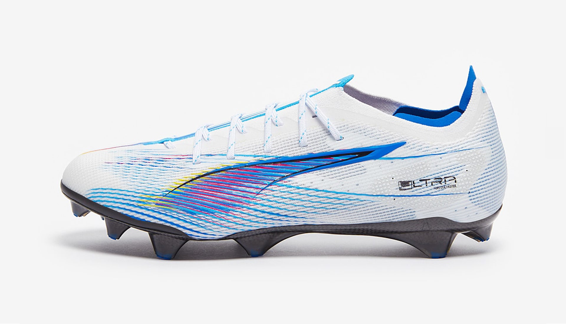 Unleashing a new generation of speed, PUMA unveiled the Ultra 5 Carbon back in May, which was built with a springy carbon-fibre soleplate – the same material used on Mercedes F1 cars. It’s the toughest, lightest, most aerodynamic material available, and here it made its triumphant return to football, having been seen previously on boots in the past, before the pursuit was abandoned due to the sheer cost of the material.