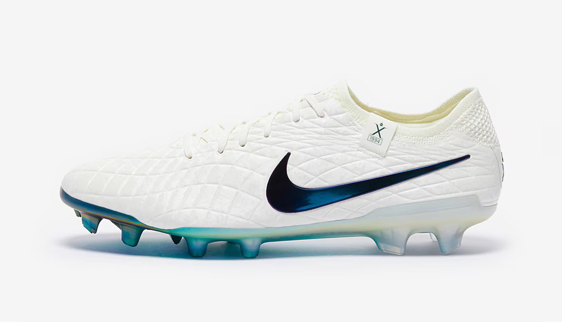 In April, Nike kicked off the 30th anniversary celebrations of their longest-lasting silo, the Tiempo, with the drop of the Tiempo Legend X ‘Emerald’, and they followed it up with the 'Pearl' edition. The official colourway on display here was “Sail/Dark Atomic Teal”, and it saw the pearl white dominate the upper, broken up only by an iridescent Swoosh execution that shimmered under the lights in similar fashion to seeing a pearl underwater. Where the ‘Emerald’ edition saw the teal on top, the ‘Pearl’ version moves it to the underside, with a premium gradient effect playing out across the soleplate.