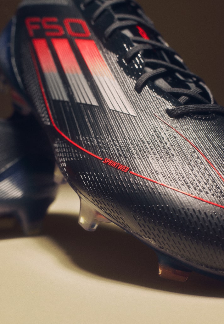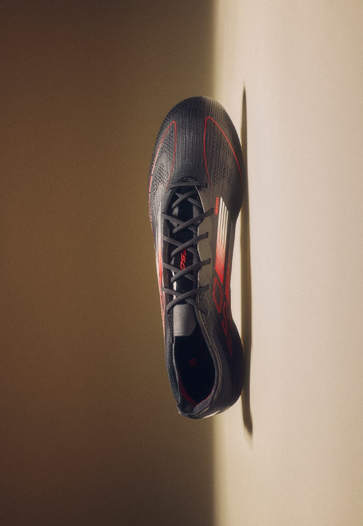 Moving on to the F50, and it’s an equally strong look for the speed silo. The “Black/Iron Met/Lucid Red” sees the red used more on the branding, along with some further subtle accents in the upper and soleplate.