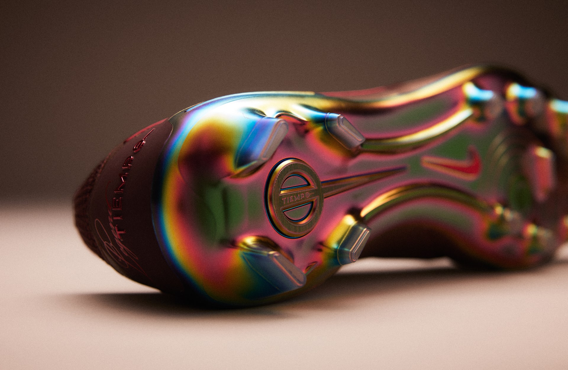Since Musiala’s sneak peek earlier in the week, we’ve been dying for a closer look, so let’s get into the details. Nike have still chosen to avoid the leather of OG boots, opting for their synthetic Flytouch Plus upper for that lightweight feel in all weather conditions. The outsole is a thing of beauty, featuring a deep red chrome finish for that extra touch of opulence. But that isn’t the only stunning part of this boot; one of the many highlights is the Ferrari red Swoosh riding down the lateral and medial sides, finished in a metallic shine. Tiempo Legend branding is seen printed on the heel in luxurious writing, an essence of ‘Edwardian Script’ font – if you know, you know.