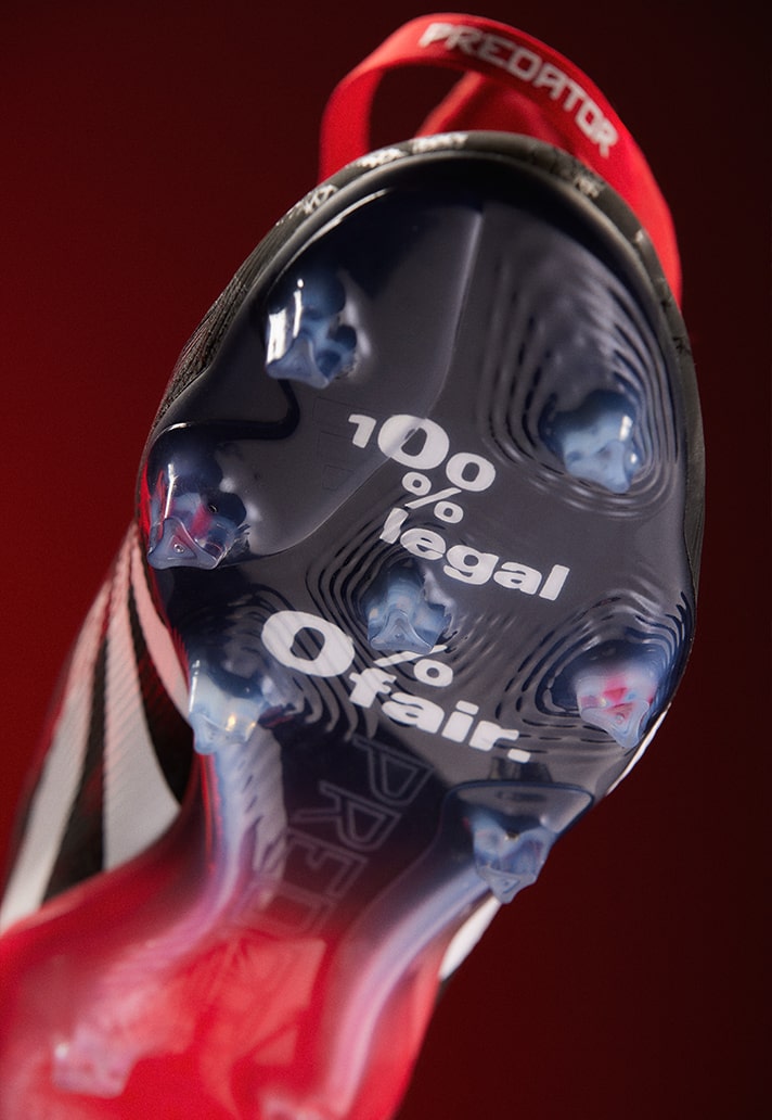 Aside from that classic colourway, the design sees the original Predator logo adorning the side of the boot – those iconic eyes back in place – while the famous ‘100% legal, 0% fair’ tagline features on the soleplate. Underneath the classic red tongue includes tributes to iconic goals from the careers of David Beckham and Zinedine Zidane. The right boot features a 93’ timestamp and infamous “raised the roof here with a goal” commentary of Beckham’s free-kick to send England to the FIFA World Cup and the nation into raptures, while the left boot includes a 45’ timestamp and ‘GOL GOL GOL’ commentary from Zidane’s ridiculous volley for Real Madrid in the 2002 UEFA Champions League final.