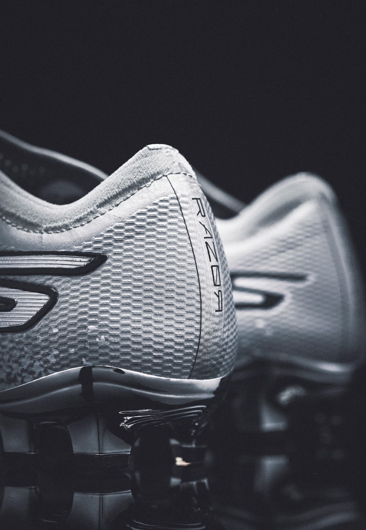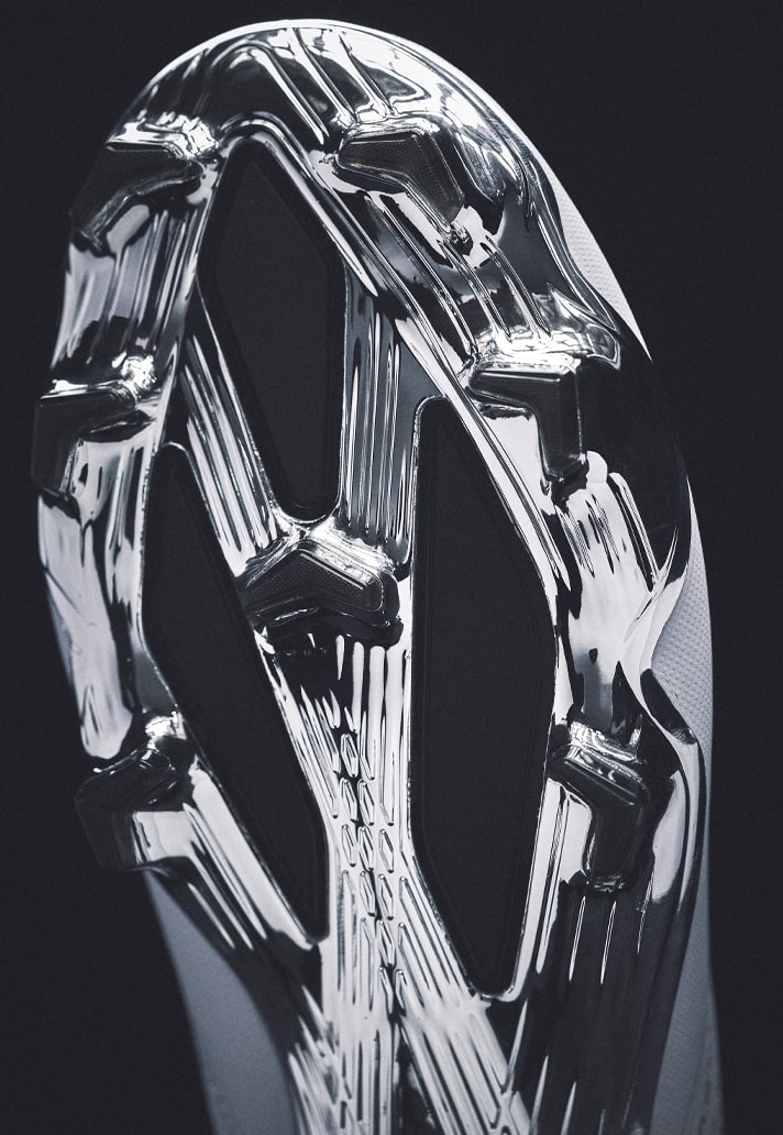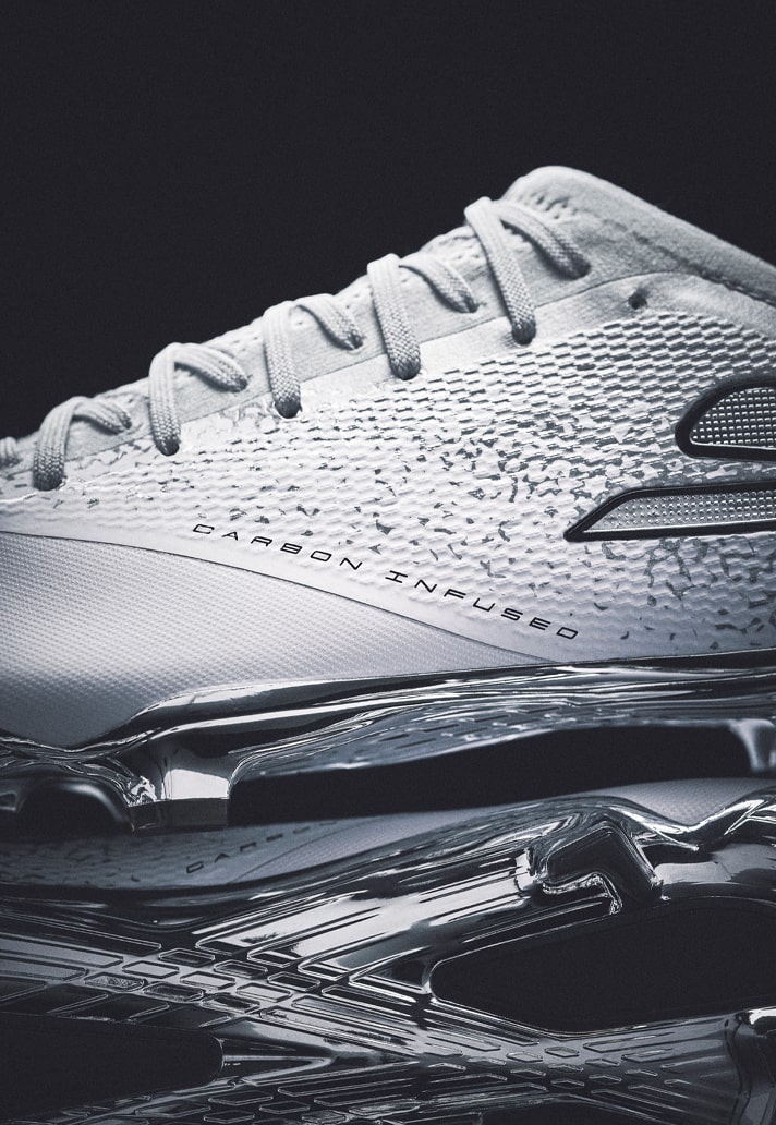 Not to be outshone, the Skechers Razor takes the speed game to new levels. Worn by the likes of Mohammed Kudus, Anthony Elanga, and Oleksandr Zinchenko, the Razor’s silver-to-white gradient design is a reflection of its rapid, track-inspired DNA. Built for acceleration and energy return, it features a carbon-infused soleplate for responsive power, while the unique U-Throat construction provides a locked-in fit. Stud placement is engineered for explosive traction, allowing players to shift direction with razor-sharp precision