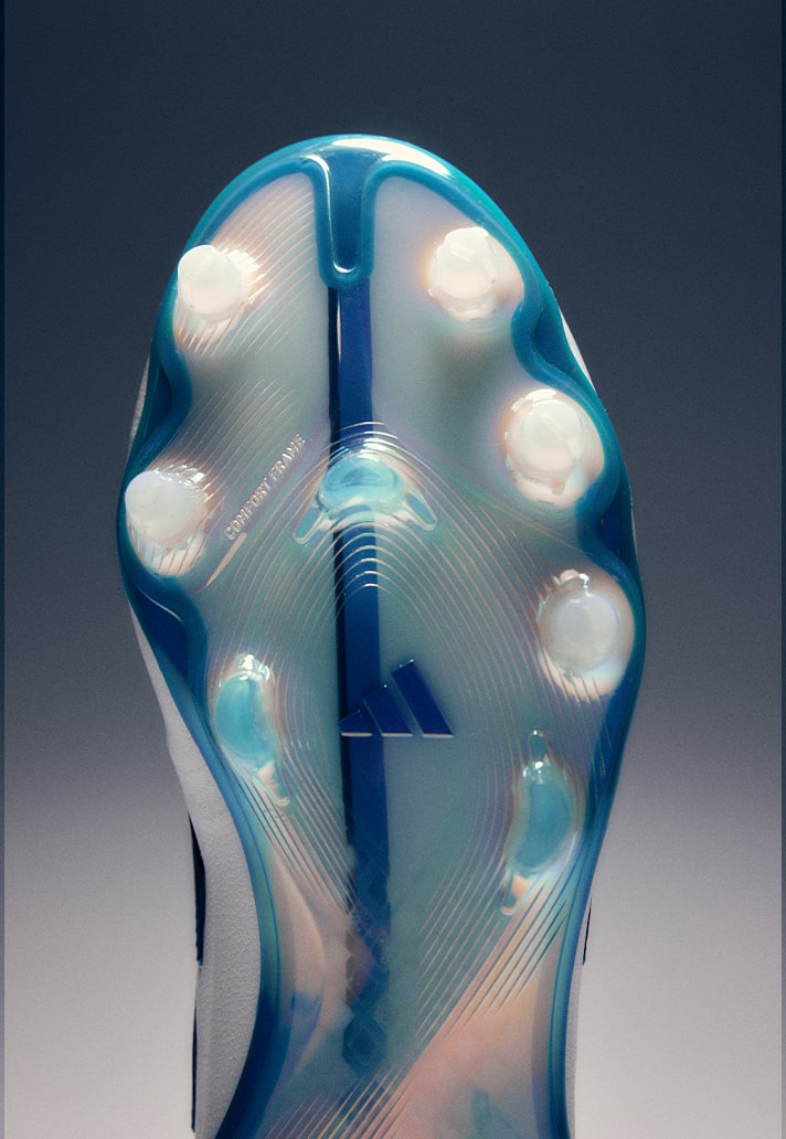 Now, two years later, Adi have again revived the vlue and white to dress up their latest version of Copa. The boot is fashioned in a ‘pure white’ base, complemented by a blue line splitting the boot down the middle. The renowned three stripes also are dressed in the same black fit seen on the 11pro’s and a ‘11pure’ sign off is stamped onto the lateral heel. Onto the soleplate, we see a chrome-blue finish onto a classic Copa Pure III soleplate – the same stud pattern and technology as seen on recent releases.
