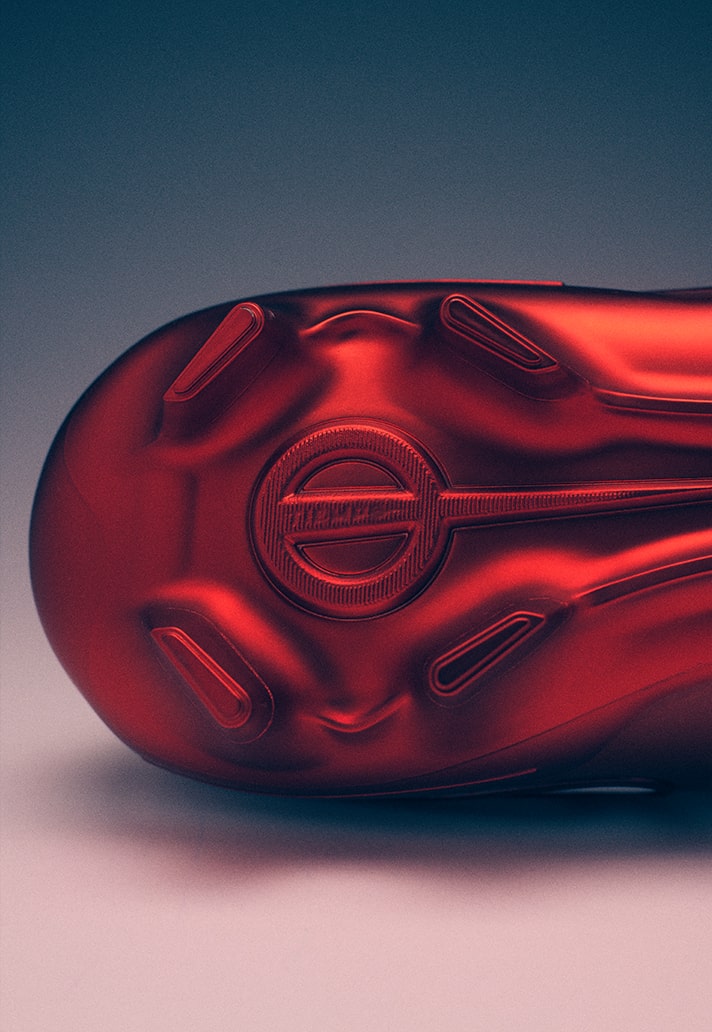 The Tiempo sees another classy look, only right for a boot of its stature. The “Hot Lava” colourway used within the ‘Mad Energy’ pack evolves into a deeper red look for this latest drop. Metallic red floods the soleplate, as well as making features on the heel and Swoosh. The Tiempo logo makes an appearance both on the heel and soleplate of the boot.