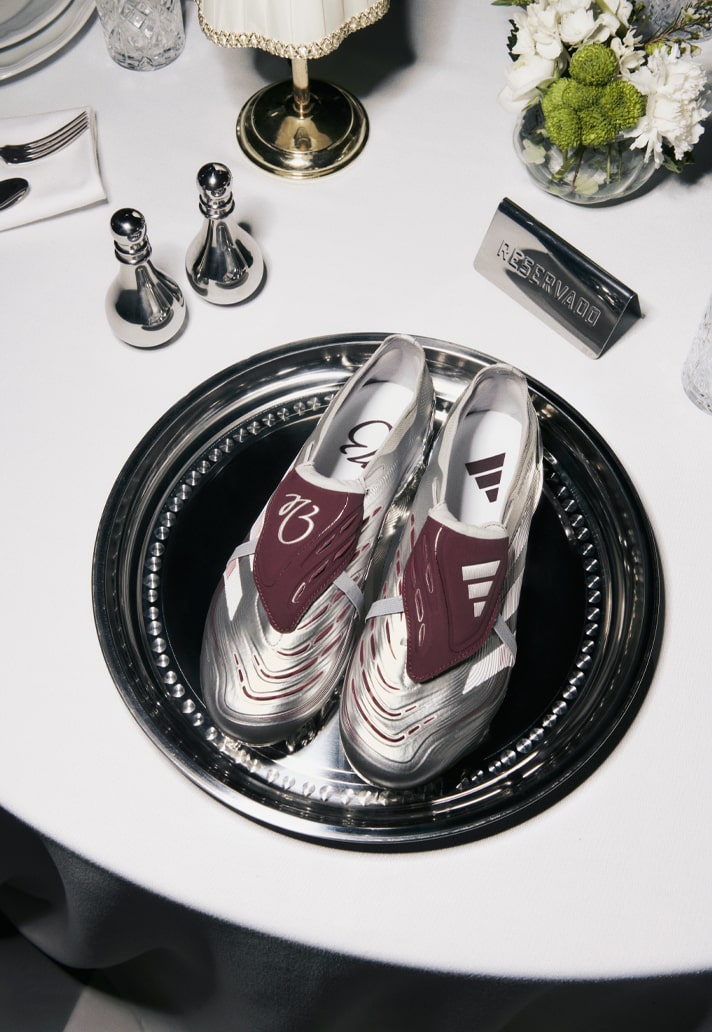 Adidas are serving up starter, main and dessert with a distinct new colourway for Jude Bellingham’s second signature boot. ‘Chrome Dream’ sees the Predator 25 model dipped in a metallic colourway, mirroring Jude’s constant hunt for silverware.