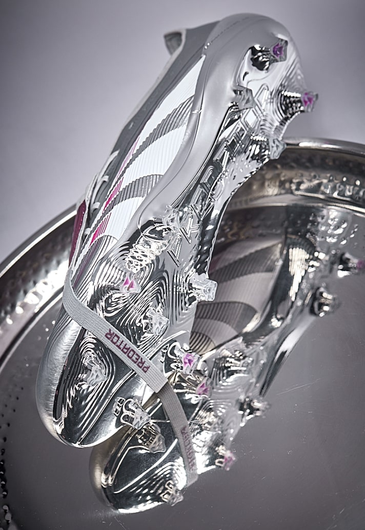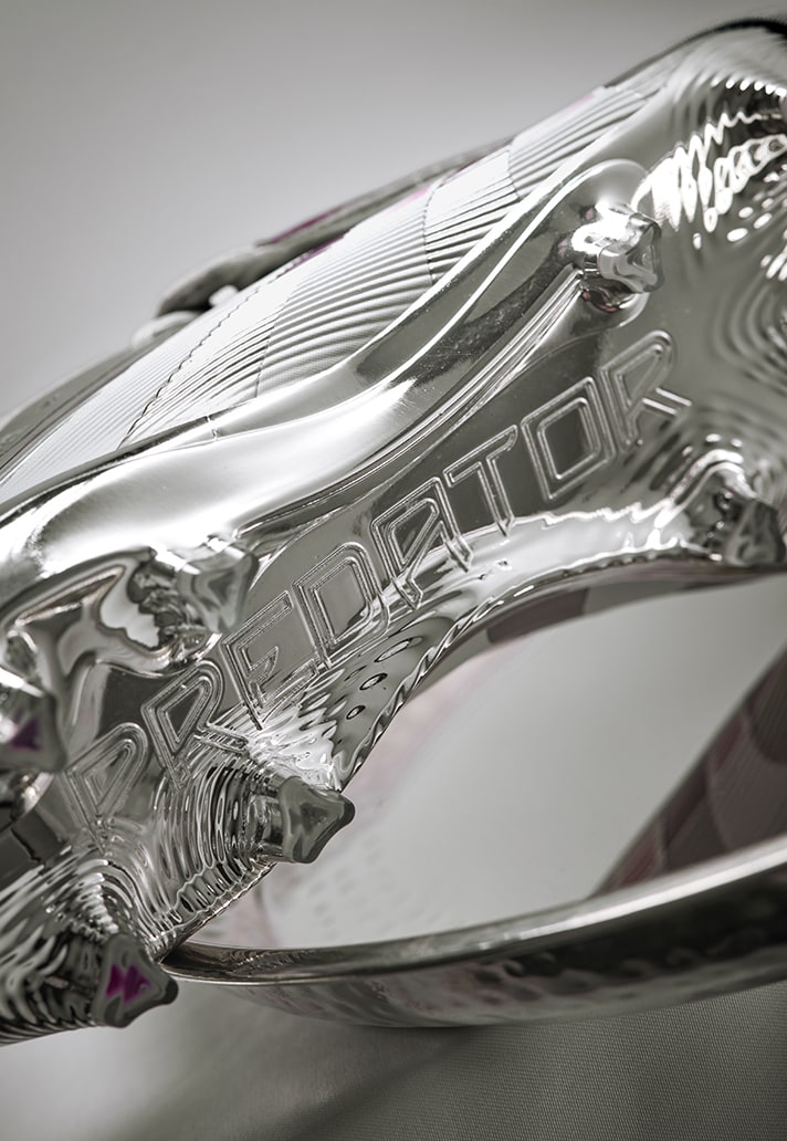 Sticking to the colour scheme, the soleplate is immersed in a full shiny silver aesthetic – one impossible to miss running past you on the pitch. Adding subtle branding touches, ‘Predator’ is scripted in the same chrome look across.