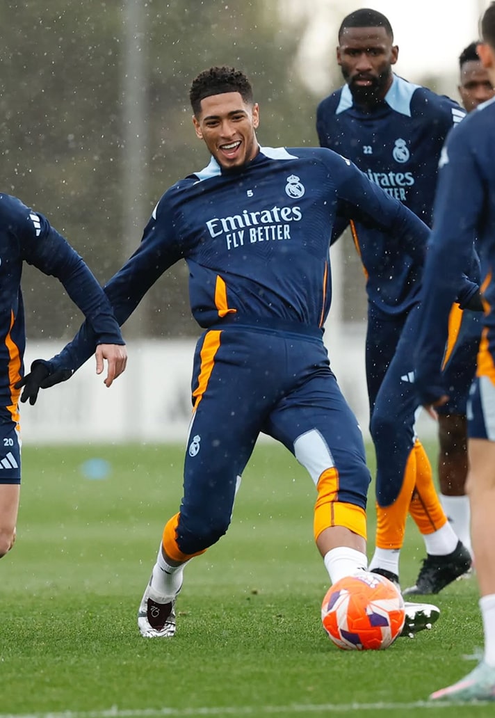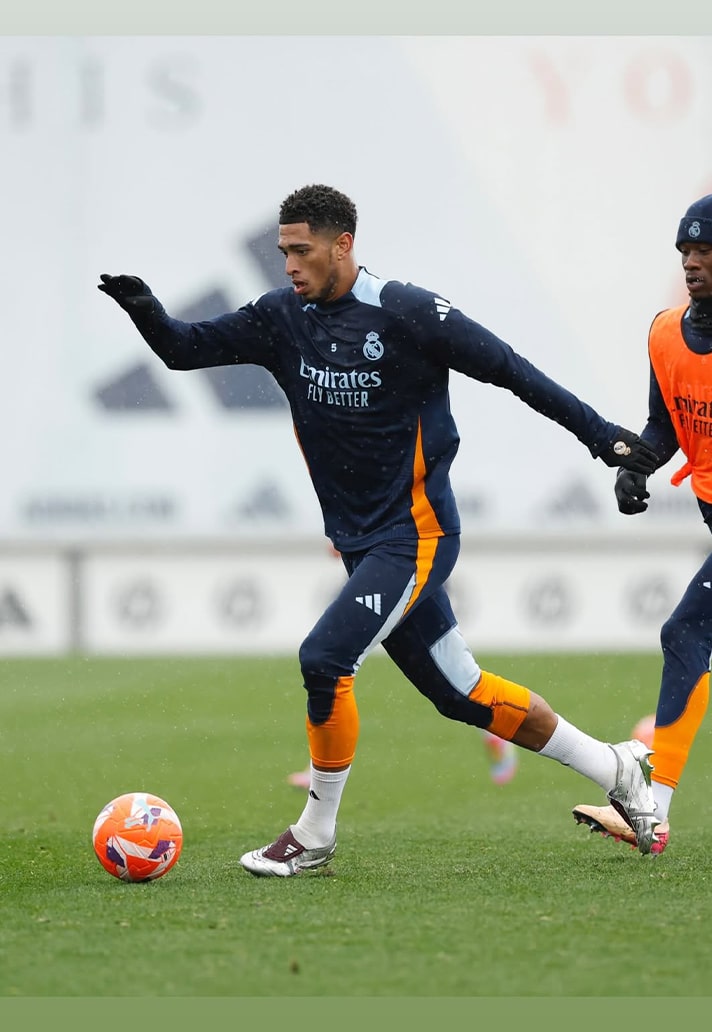 Jude Bellingham never stops to impress and adidas continue to praise him with their support, and it looks like we are in for another special Predator for the young England star. After only receiving his first signature back in October 2024, gifted after an icnredible debut season at Los Blancos, Jude has geared up in his next bespoke Predators for us all to look on in awe. Spotted during recent Real Madrid training sessions from late this week, Bellingham is donning an un-released pair of Predator 25's in a stunning new colourway, with his custom JB logo stamped onto the fold-over tongue.